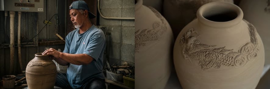 私たちは、沖縄・糸満で長年、泡盛用の酒甕を焼き続けてきた窯元「いちまん焼」です。