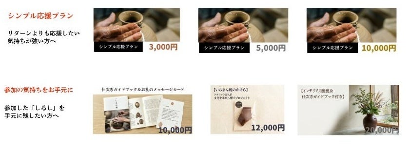 下記のように、幅広いリターンをご用意しました。詳細はリターン一覧をご覧ください。