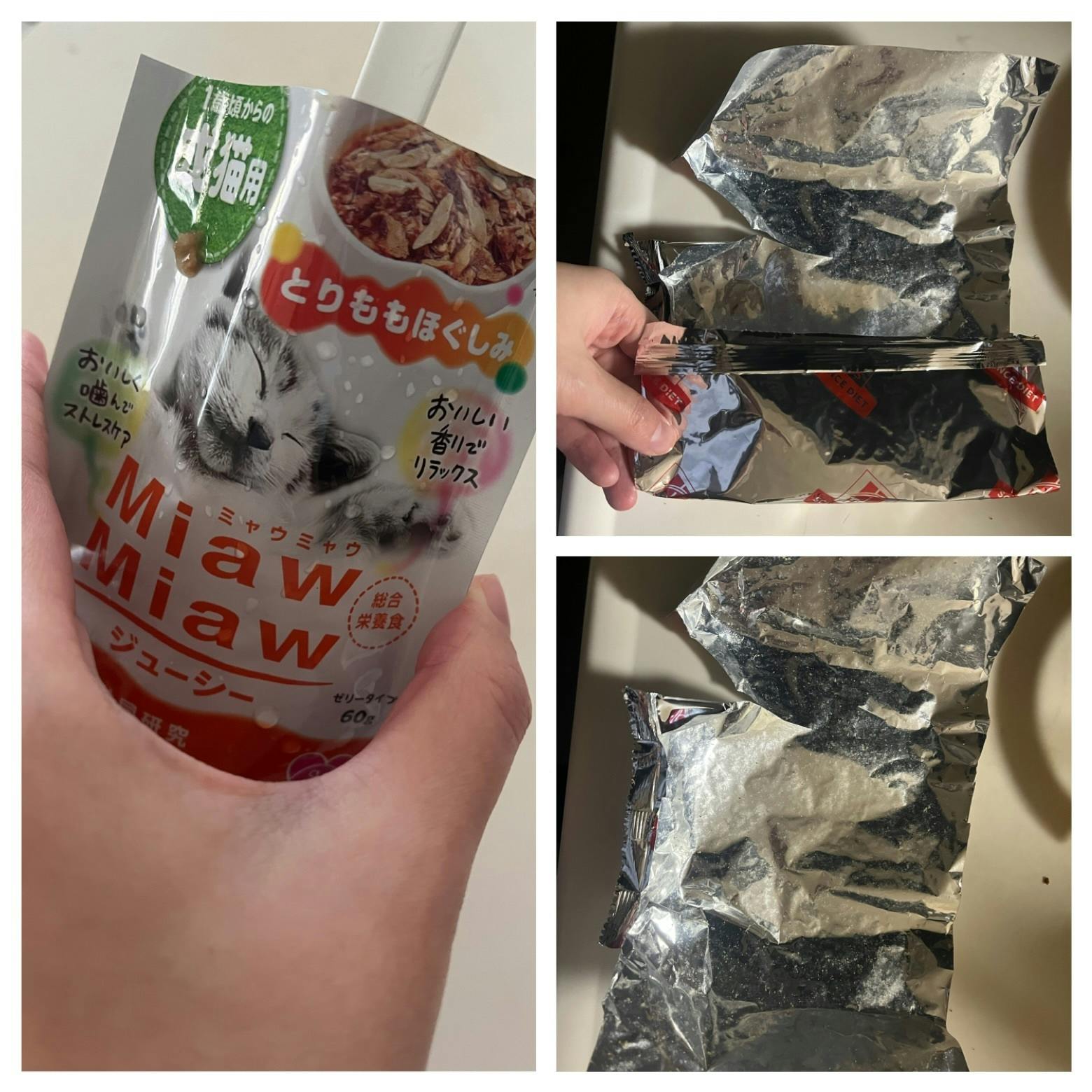 カリカリひと袋、パウチひと袋を使用しました。