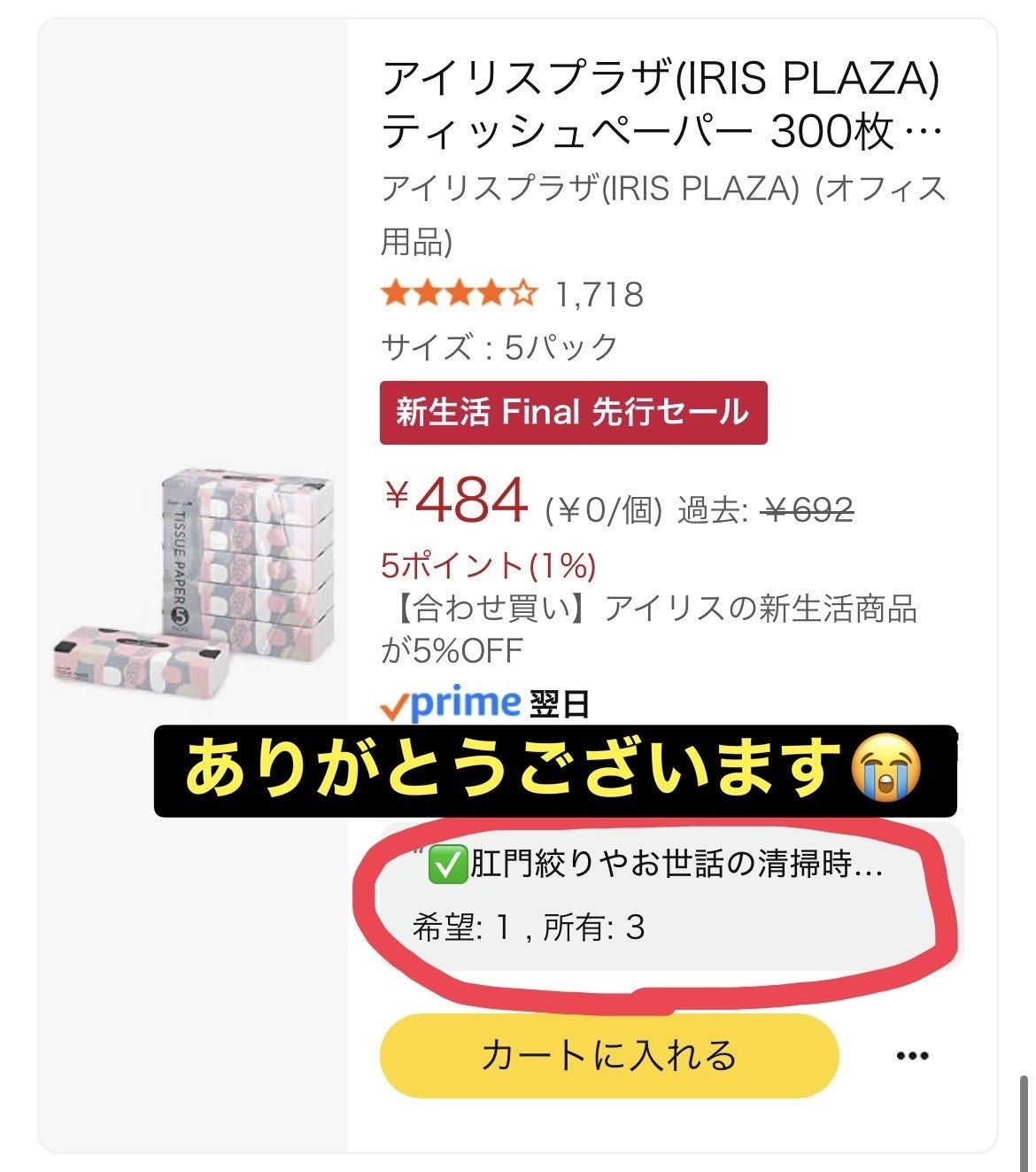 ほしいものリストの所有数が増えており、皆さまの温かいお気持ちに心から感謝しています。