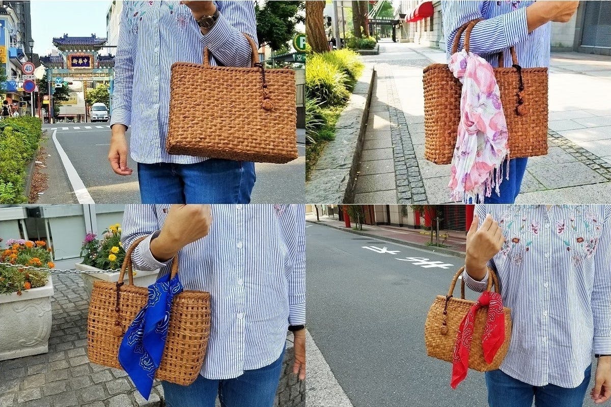 ここ数年ずっと人気のファッションアイテム《籠バッグ》。素材やデザインなど様々な商品がたくさん登場していますが、シーズンにあわせて例えば厚手のストールやファーなど自分なりのアレンジを加えることで、最近では特に秋冬もかごバッグを取り入れるのがトレンドに。本プロジェクトの山葡萄のバッグは内布付ですし、使い込むほどに深みが増す素材なのでしまい込まず、是非一年中ご愛用ください。