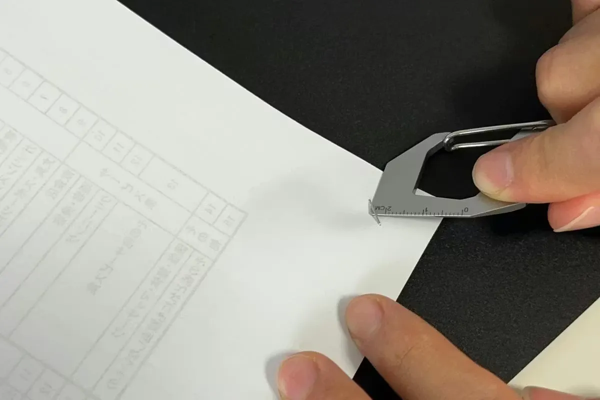 Sharkeyには、2センチまで測定可能なスケール機能が備わっています。この小さなスケールは、ちょっとした長さを測りたいときに便利です。例えば、部品の寸法を確認したり、小さな物のサイズを測る際に役立ちます。コンパクトなSharkeyに搭載されたこのスケール機能は、日常のちょっとした計測作業を手軽にサポートしてくれる便利な機能です。
