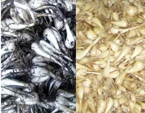 収穫されたらっきょうの綺麗に洗って次の工程に!