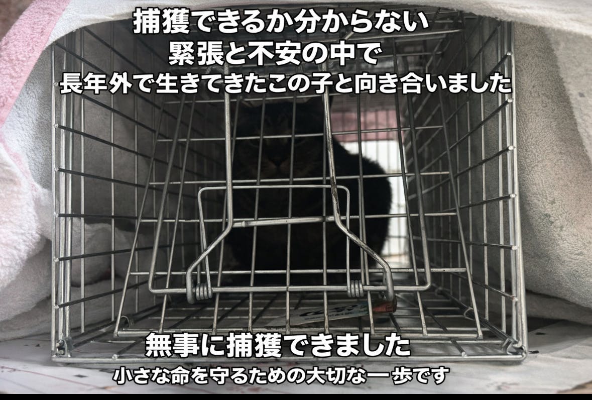 昨日、去勢手術に向けた準備を進め、長年外で生きてきた外猫ちゃんを無事に捕獲することができましたので、ご報告させていただきます。