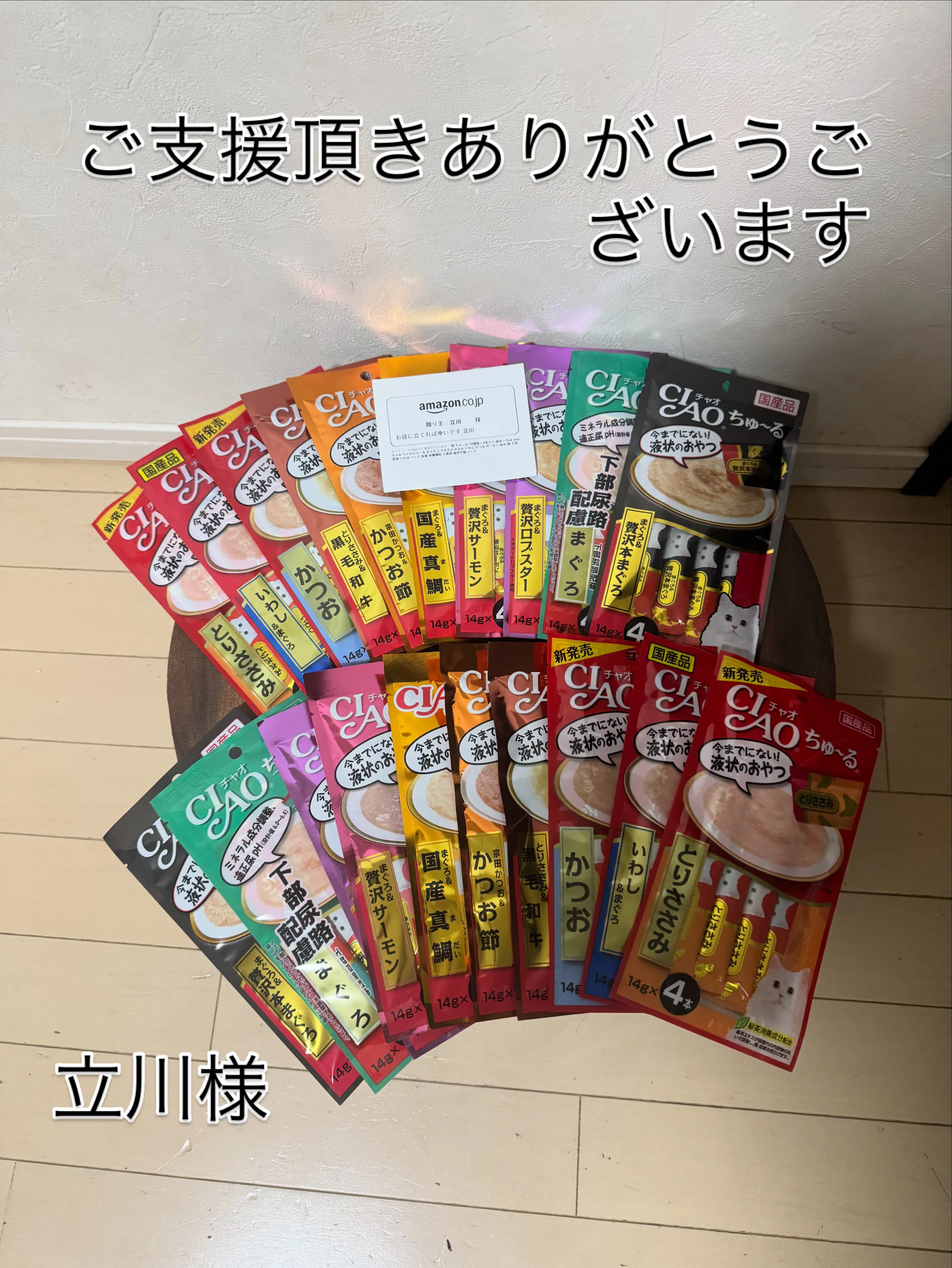 この度は、たくさんの猫用チュールをご支援いただき、本当にありがとうございます。