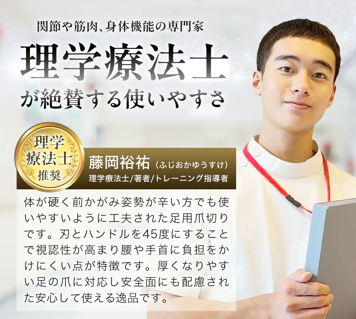 中でも、骨格の歪みや関節のズレを整える専門家である整体師の方や、身体機能や基本動作の専門家である理学療法士の方など、各分野の専門家のご意見を取り入れたうえで商品化しております。