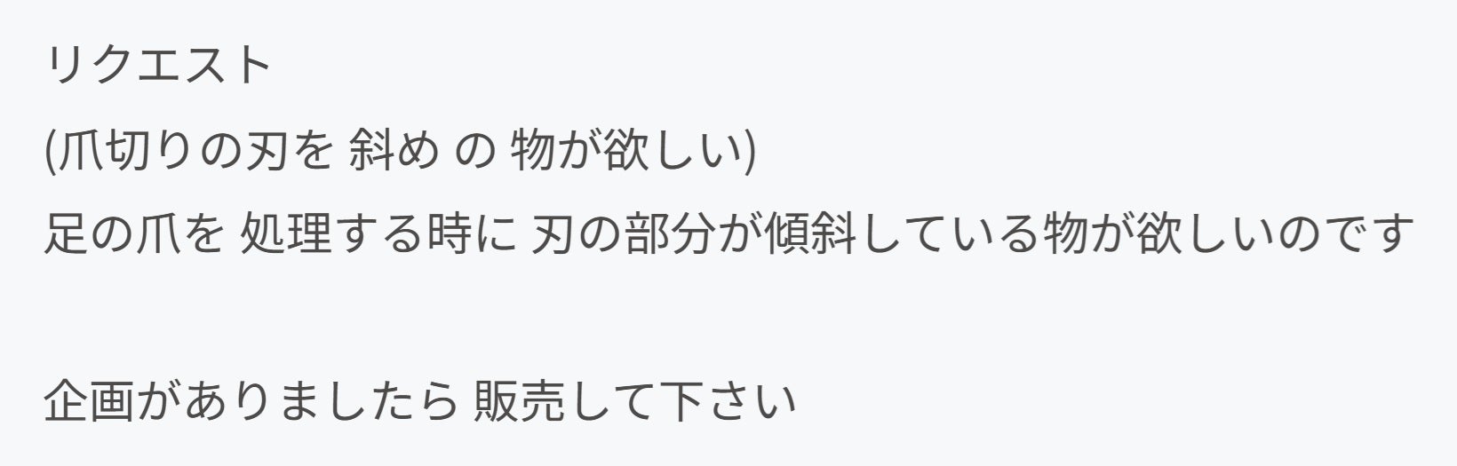 なるほど、これは私達が足用の爪切りをしっかり作ってご提案しないといけない。