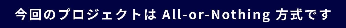 本プロジェクトは All-or-Nothing 方式で実施します。目標金額に到達した場合のみ生産が開始され、未達の場合は決済は行われず、プロジェクト自体も成立しません。