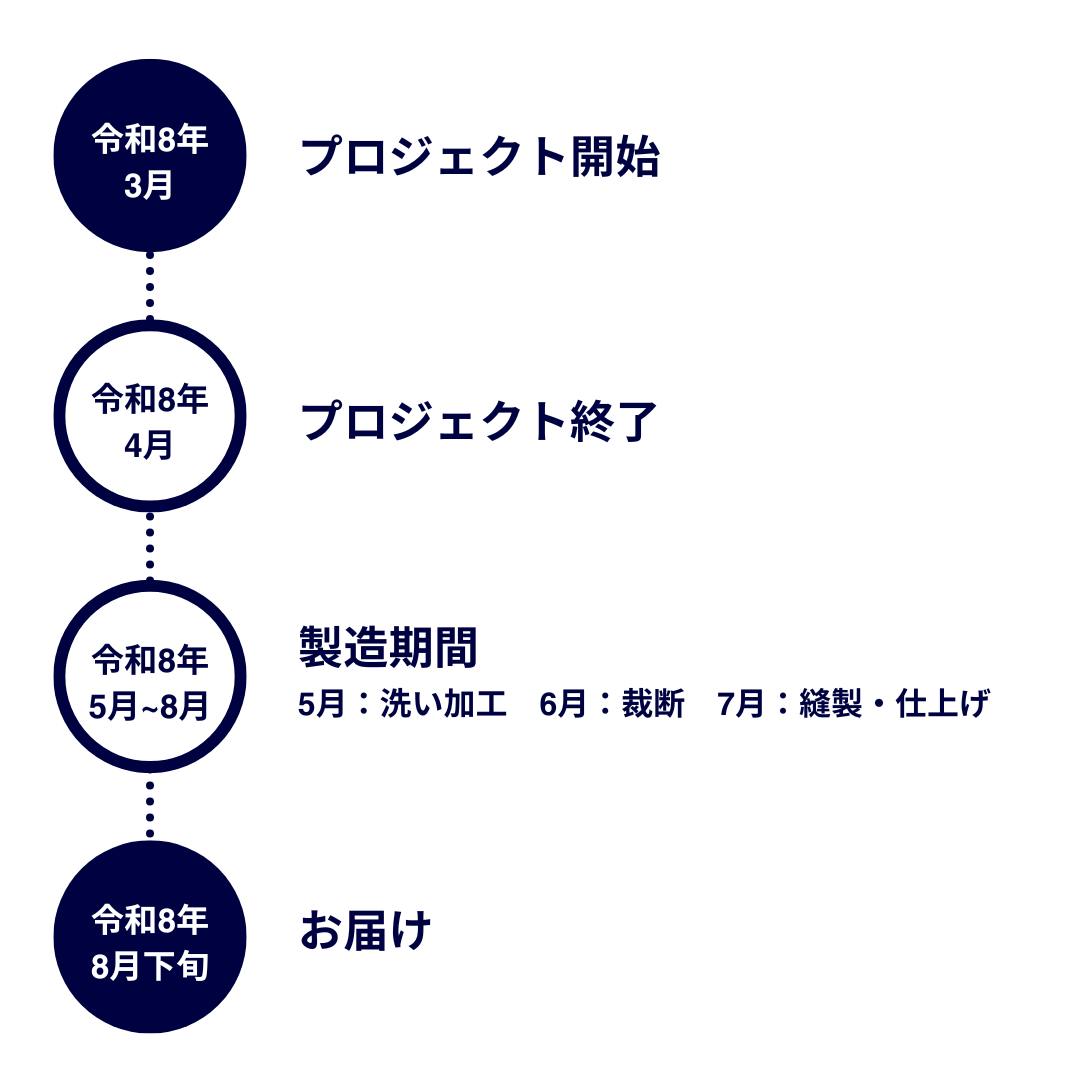 ・洗い加工でトラブル及び遅れのため、工場のスケジュール調整により着手時期が変動する場合があります。