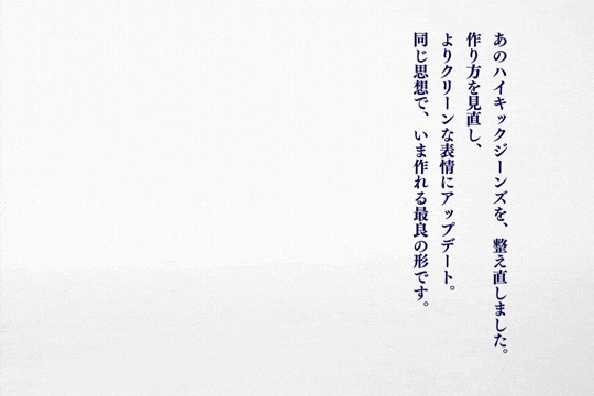 なぜなら、今日の評価よりも、10年先に「やっぱりハイキックジーンズが穿きたい」と思ってもらえることのほうが大切だと考えているからです。