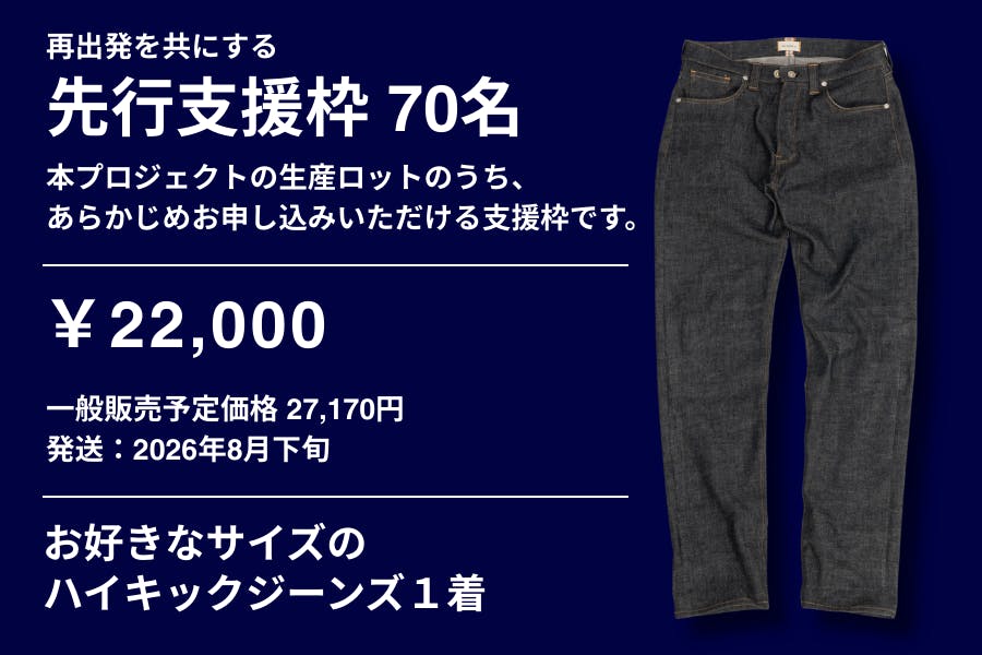 本日12:00にスタートした「ハイキックジーンズ復活プロジェクト」。 開始からわずか1時間足らずで、80万円を超えるご支援をいただきました!