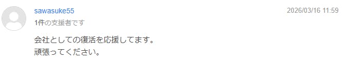 その多くが「応援しています」「頑張ってください」という、あたたかくも力強いお言葉です。画面越しにその文字が並ぶのを見るたび、私たちは一人ひとりの支援者様の顔を思い浮かべ、深く、深く感謝しております。すべて大切に読ませていただいています。