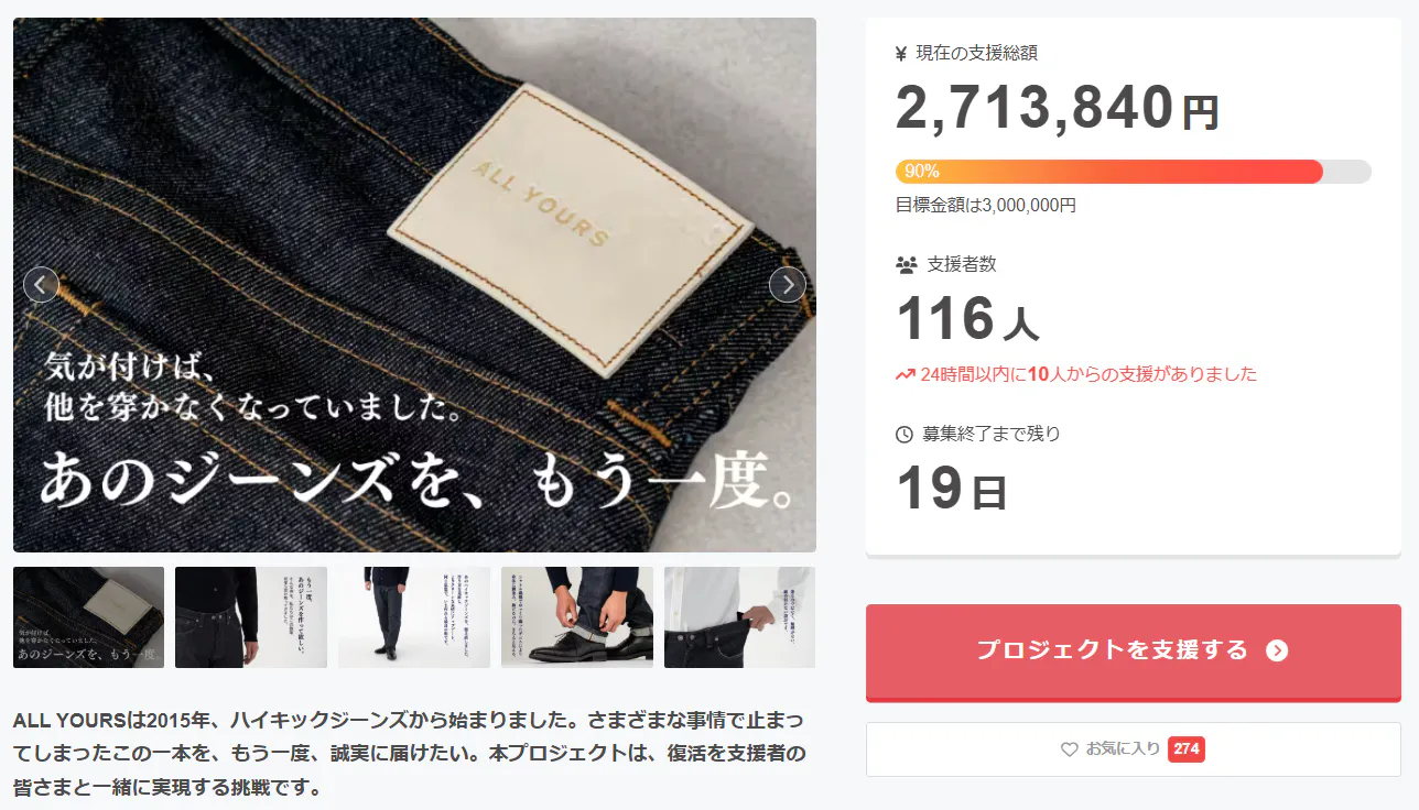 現在、支援者数は116名、達成率は90% まで到達。 いよいよ、目標達成まで「あと10%」です。