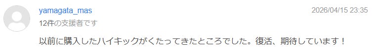 --- 温かいコメントをいただき本当にありがとうございます!以前からハイキックジーンズを愛用してくださっていたのですね。「くたってきた」という言葉に、日々の中でこの一本が相棒として活躍していた時間が想像でき、作り手としてこれ以上ない喜びを感じています。一度は止まってしまったプロジェクトですが、こうして待っていてくださる方がいることが、ALL YOURSの何よりの原動力です。新しくお届けするハイキックジーンズも、また長く、くたくたになるまで穿き倒していただけるよう、誠実にお作りしてお届けします。復活の瞬間を楽しみにしていてください!