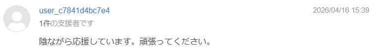 --- 温かいお言葉をいただき、本当にありがとうございます。「陰ながら」という一言に、そっとALL YOURSの再出発を見守ってくださっている優しさを感じ、身が引き締まる思いです。 その応援が、今のALL YOURSにとってどれほど大きな力になっているか計り知れません。いただいたエールを胸に、最後の一秒まで、そしてお届けまで誠実に走り抜けます。 これからもALL YOURSをどうぞよろしくお願いいたします。