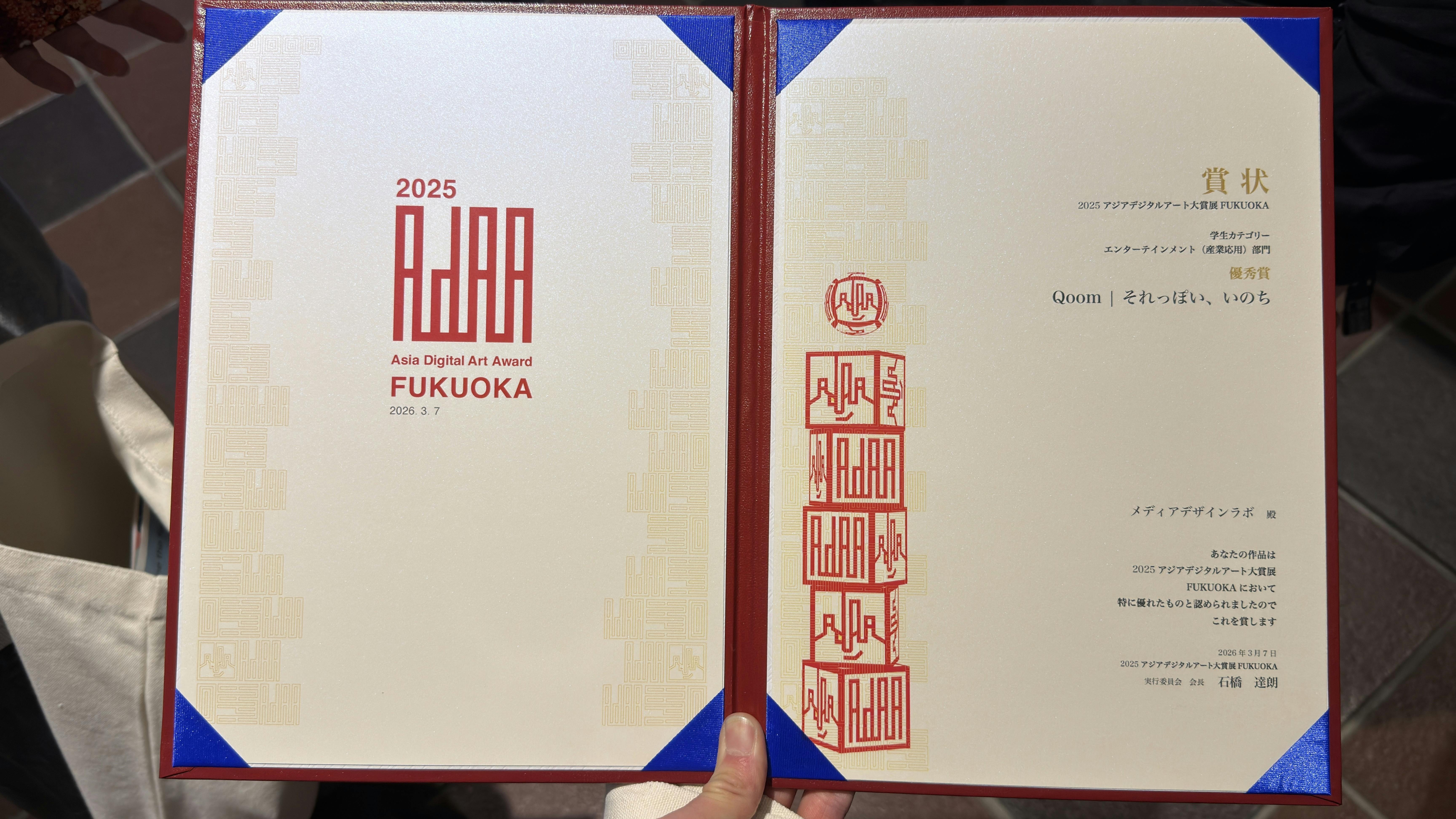 今回のメンバーでは初となるアジアデジタルアート大賞展FUKUOKAでの優秀賞受賞。