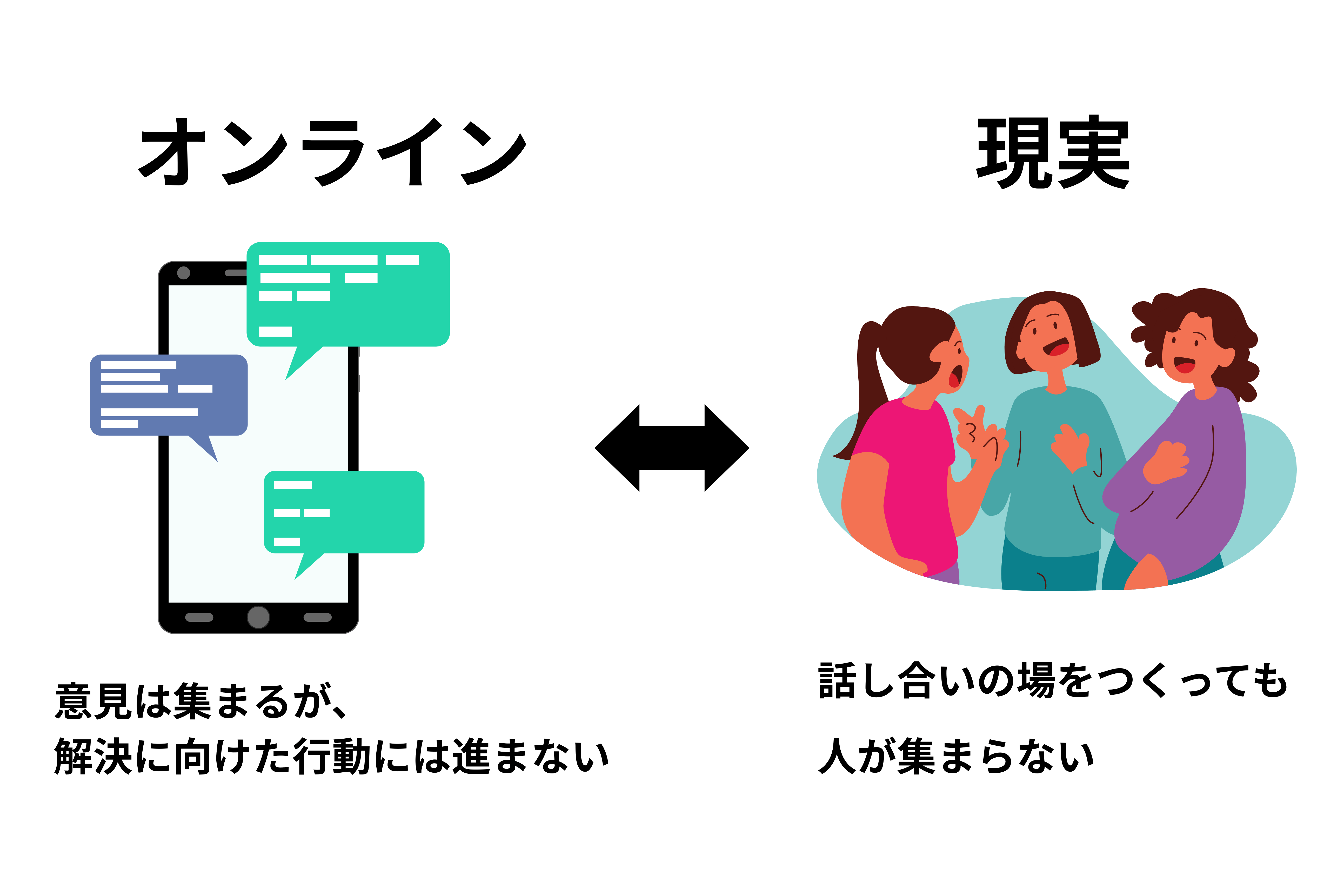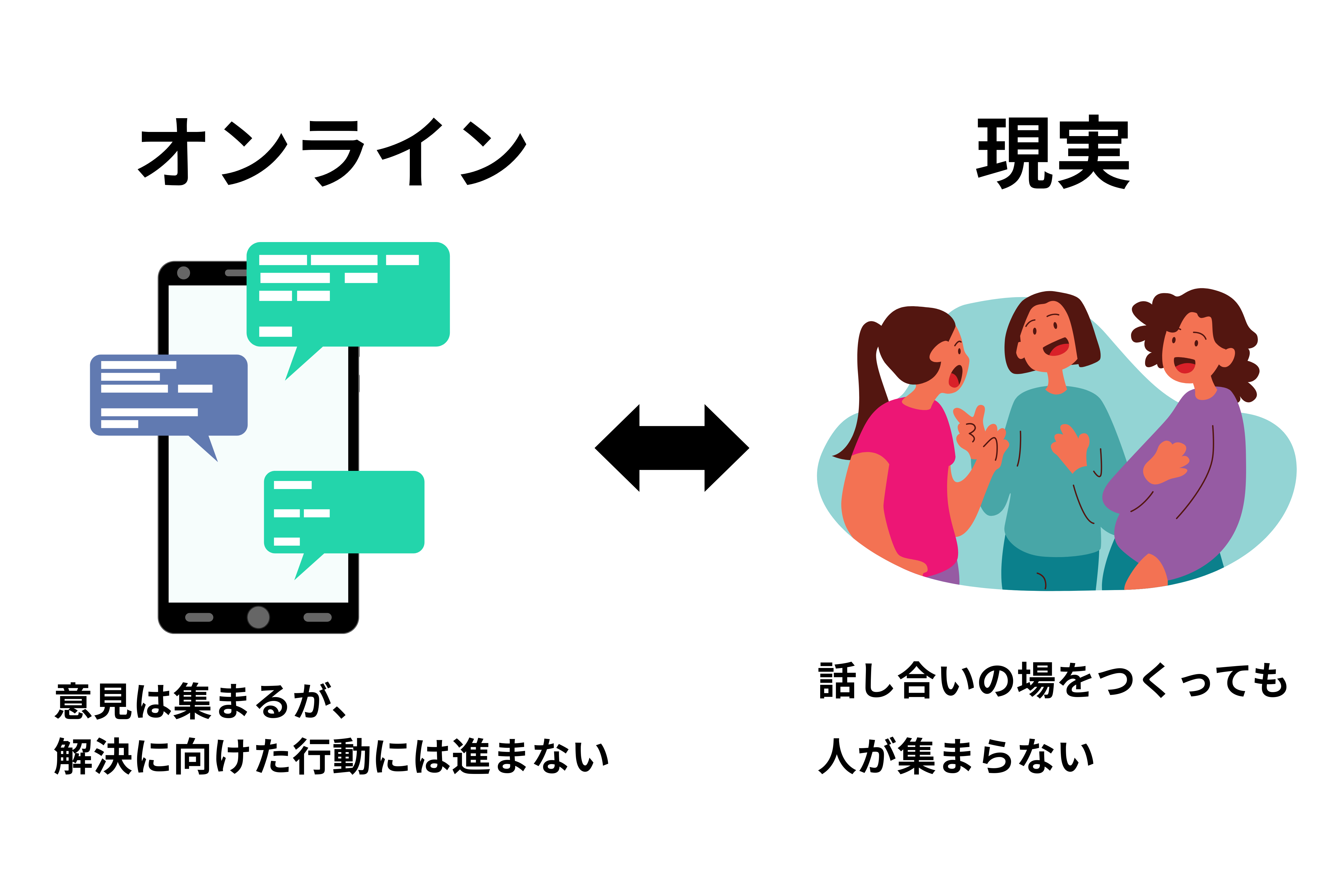 ・オンラインでは、意見は集まるが、解決に向けた行動には進まない