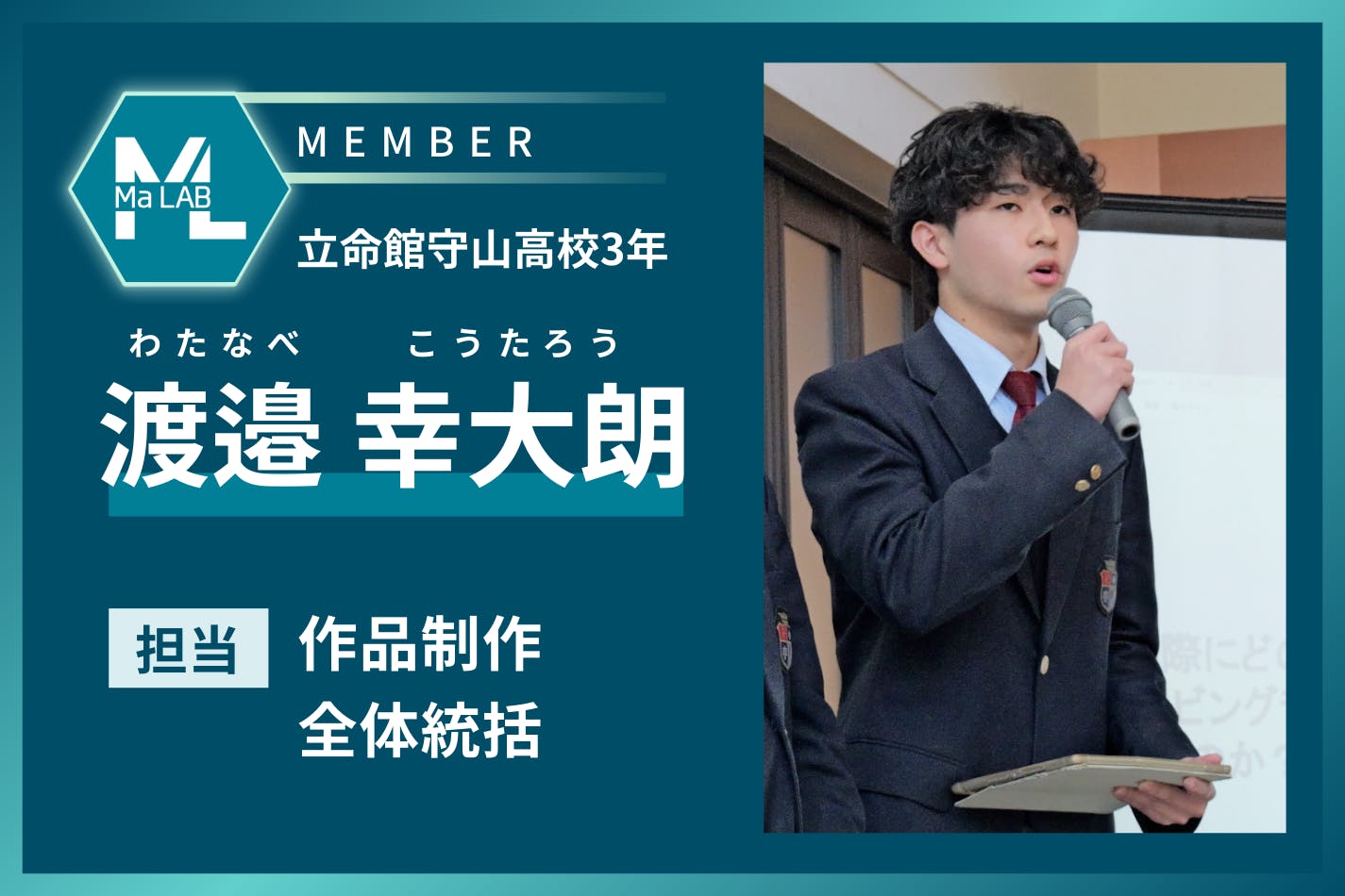 はじめまして。立命館守山高校3年生の渡邉幸大朗と申します。