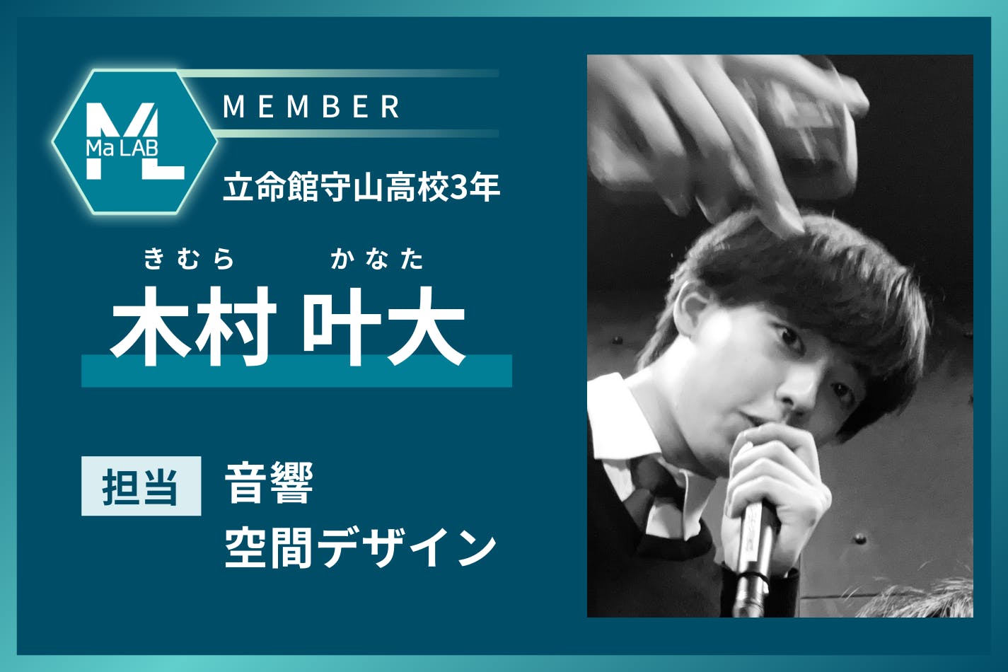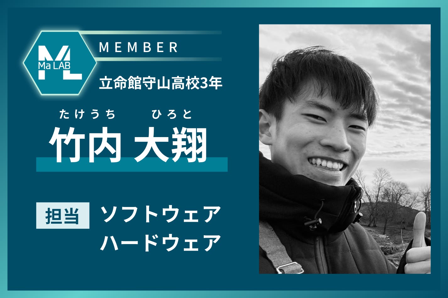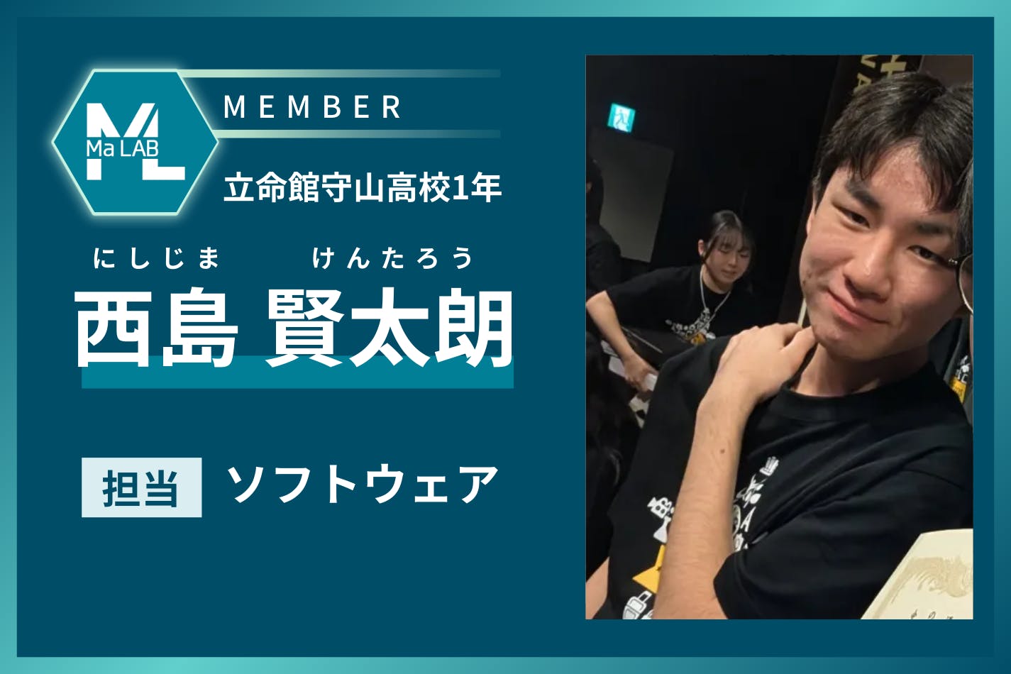 本プロジェクトは、高校生制作チーム「Ma LAB」によって進められています。代表の渡邉を中心に、システム、ハードウェア、音響、広報などの役割を分担し、それぞれが専門性を持って制作に取り組んでいます。