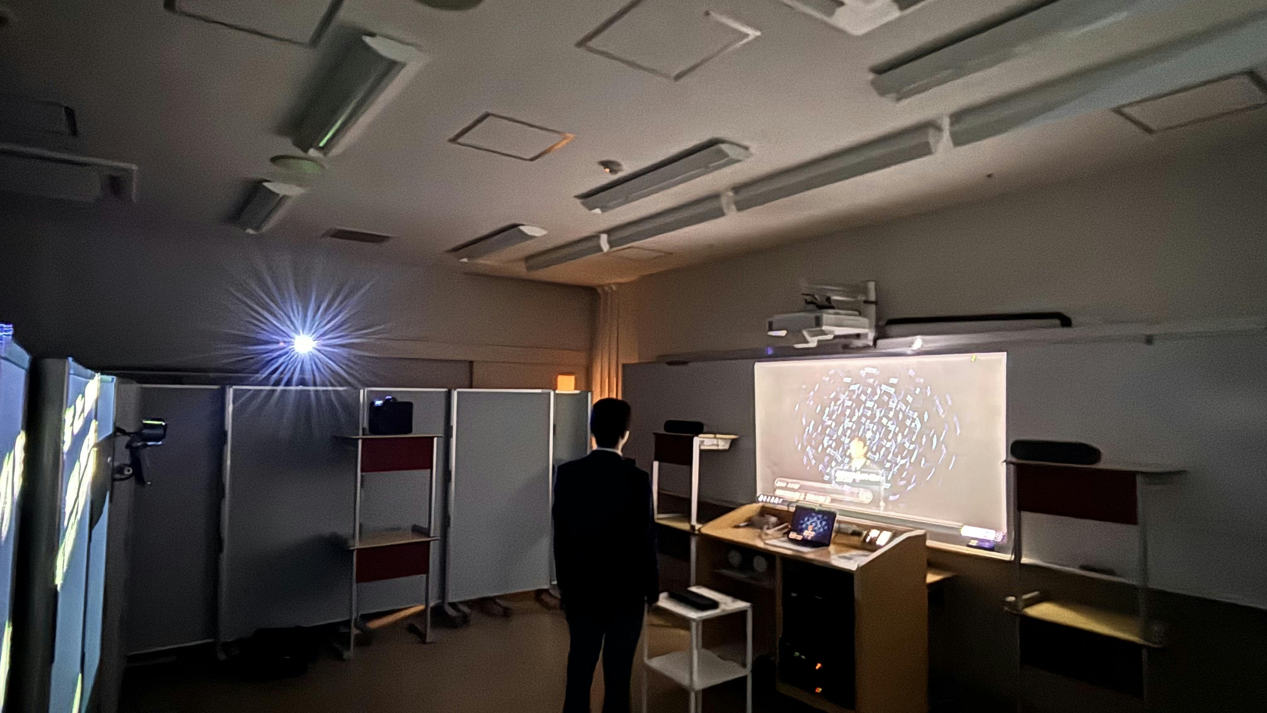 → 教室全体に映像が投影され、壁そのものが動く巨大なスクリーンになります。