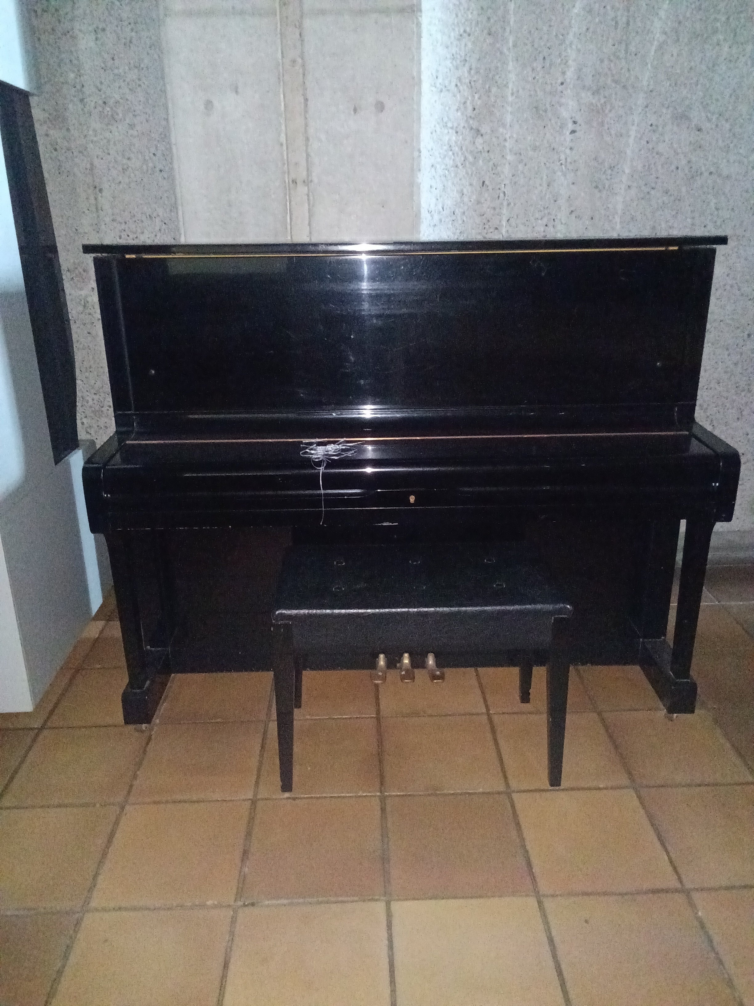 ピアノの修繕の為、一旦ピアノ工房へ入庫。現在分解掃除と下絵書きの為の塗装剥離作業中。