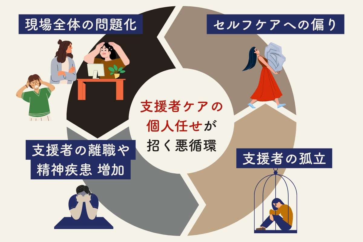 その結果生じる離職や職場環境の悪化は、支援者個人の問題を超え、現場全体、組織運営はもちろん、地域へのケアの存続に悪影響を及ぼしかねません。