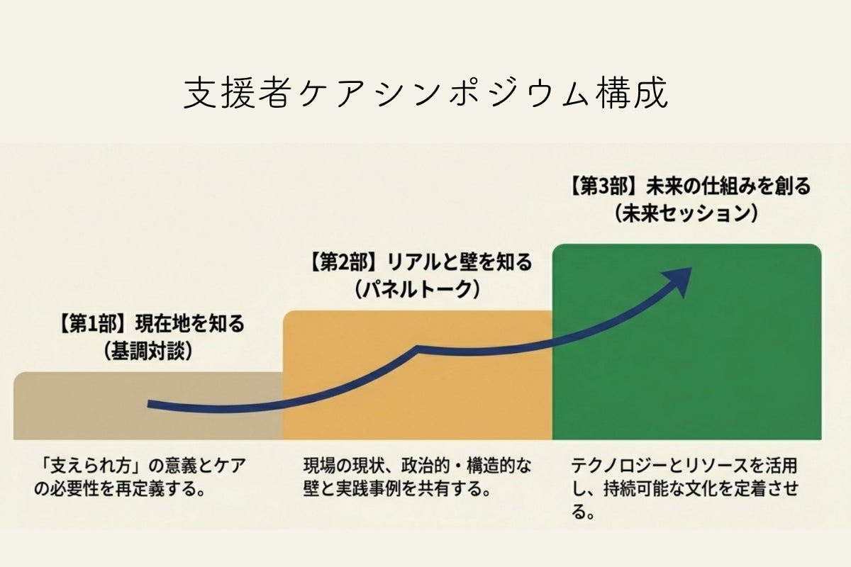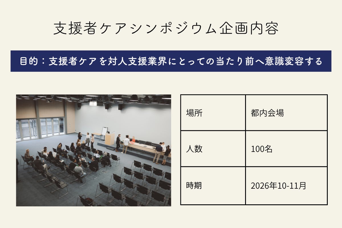 支援者ケアの意識向上を目指した「支援者ケアシンポジウム」を開催し支援者ケアの文化をひろげます。