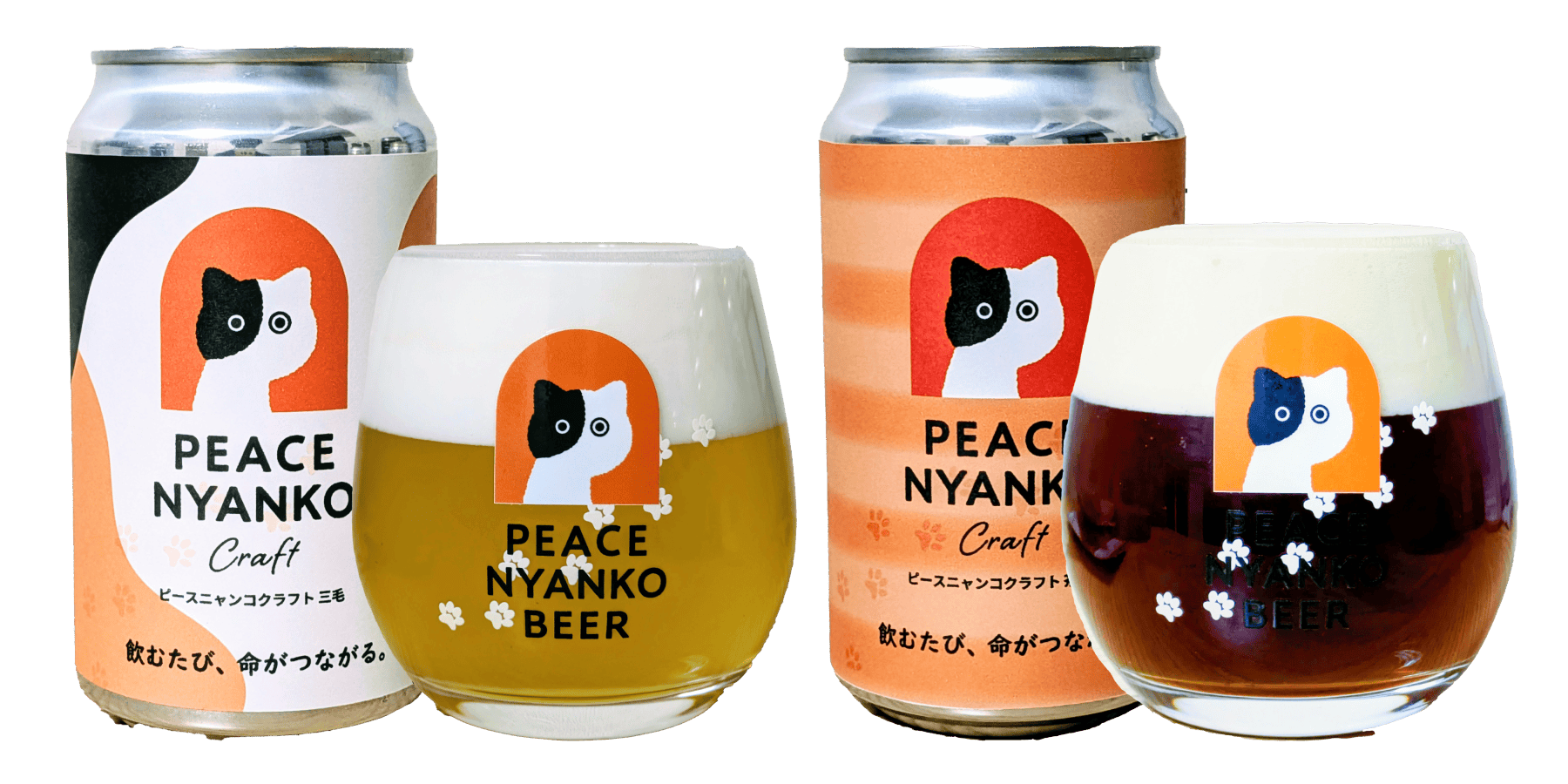 白猫と黒猫をモチーフにした「ピースニャンコビール」を飲むたび、保護猫活動への寄付が生まれます。猫好きの方も、ビール好きの方も。あなたの今日の一杯を、猫たちの未来につなげませんか?