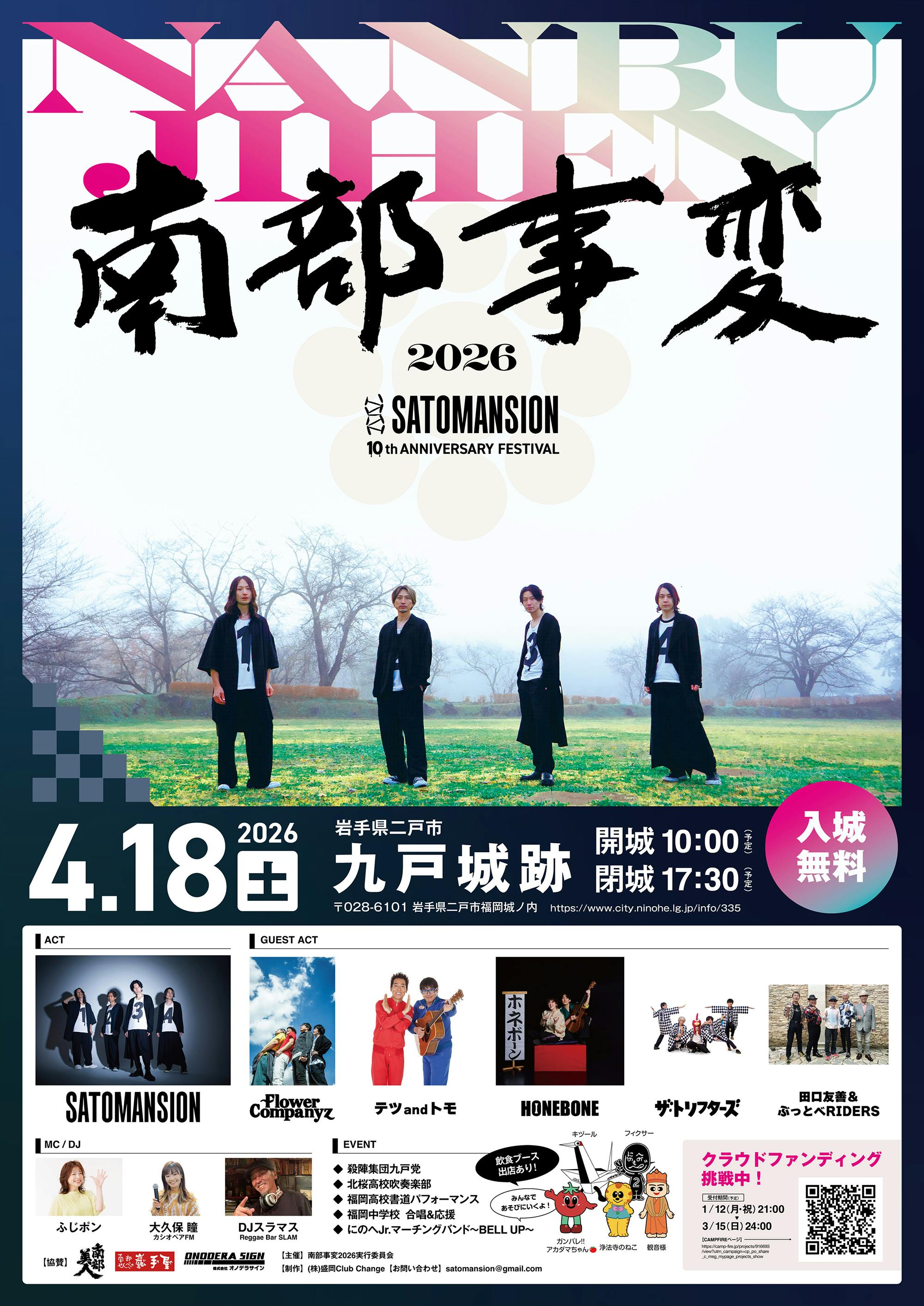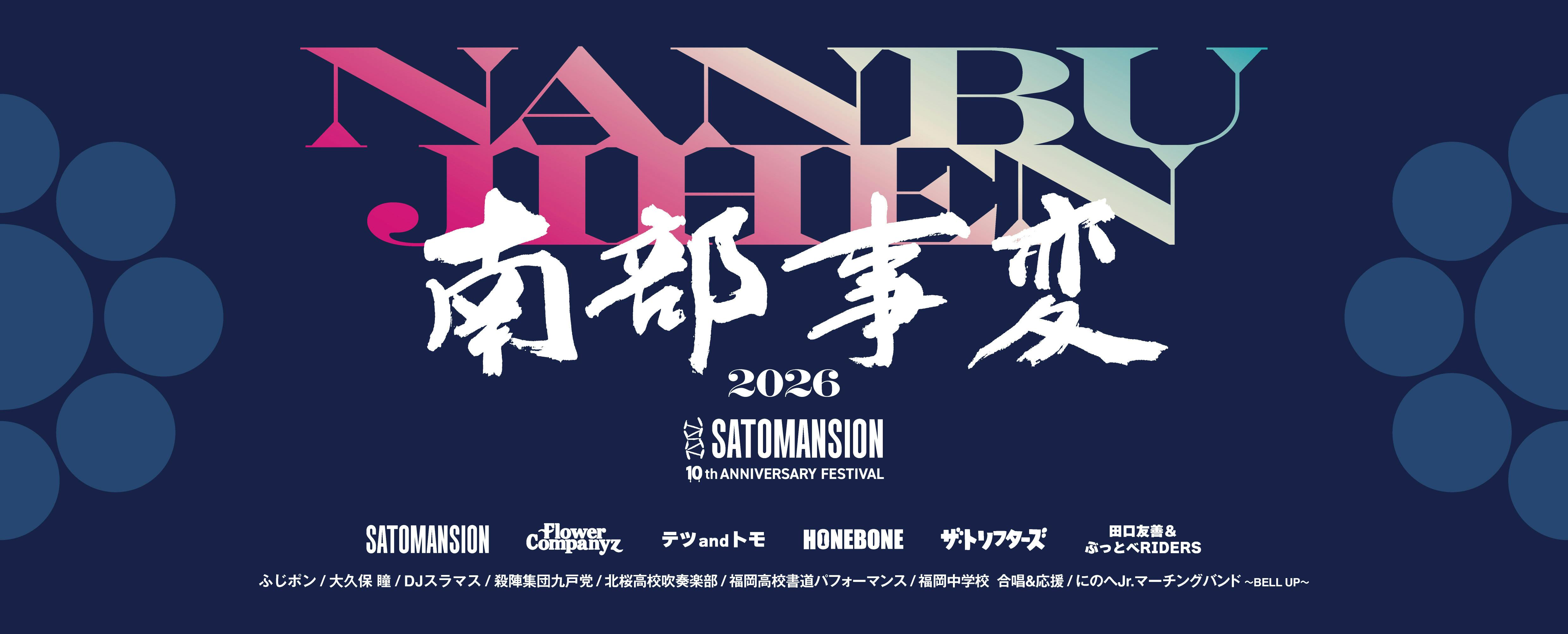 ●日程:2026年4月18日(土)SaToMansion10th ANNIVERSARY FESTIVAL【南部事変2026】