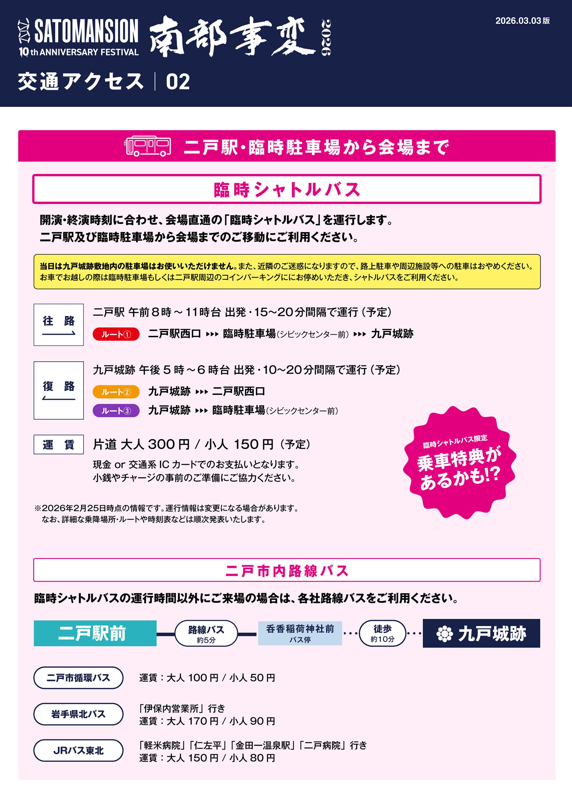 二戸駅、臨時駐車場からはシャトルバスを運行します!