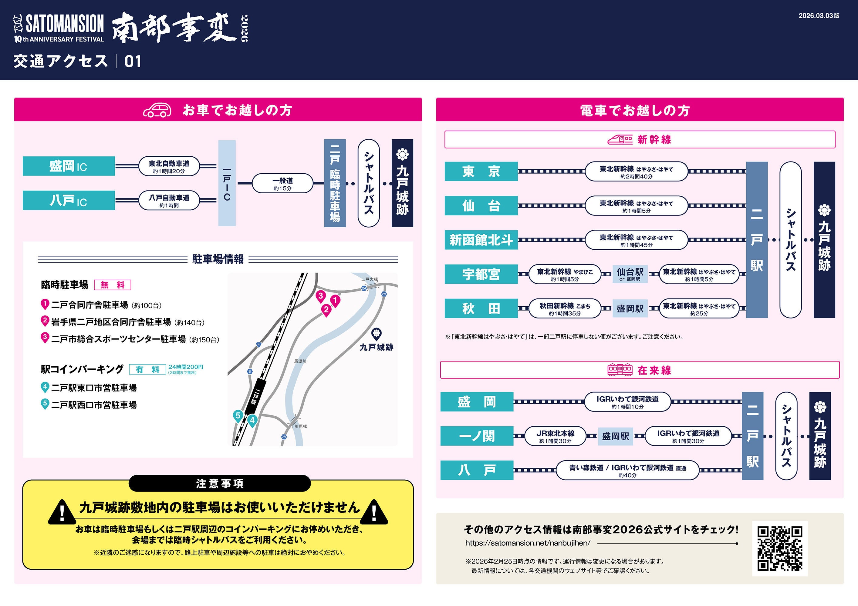 ※当日、九戸城跡敷地内の駐車場はお使いいただけません。