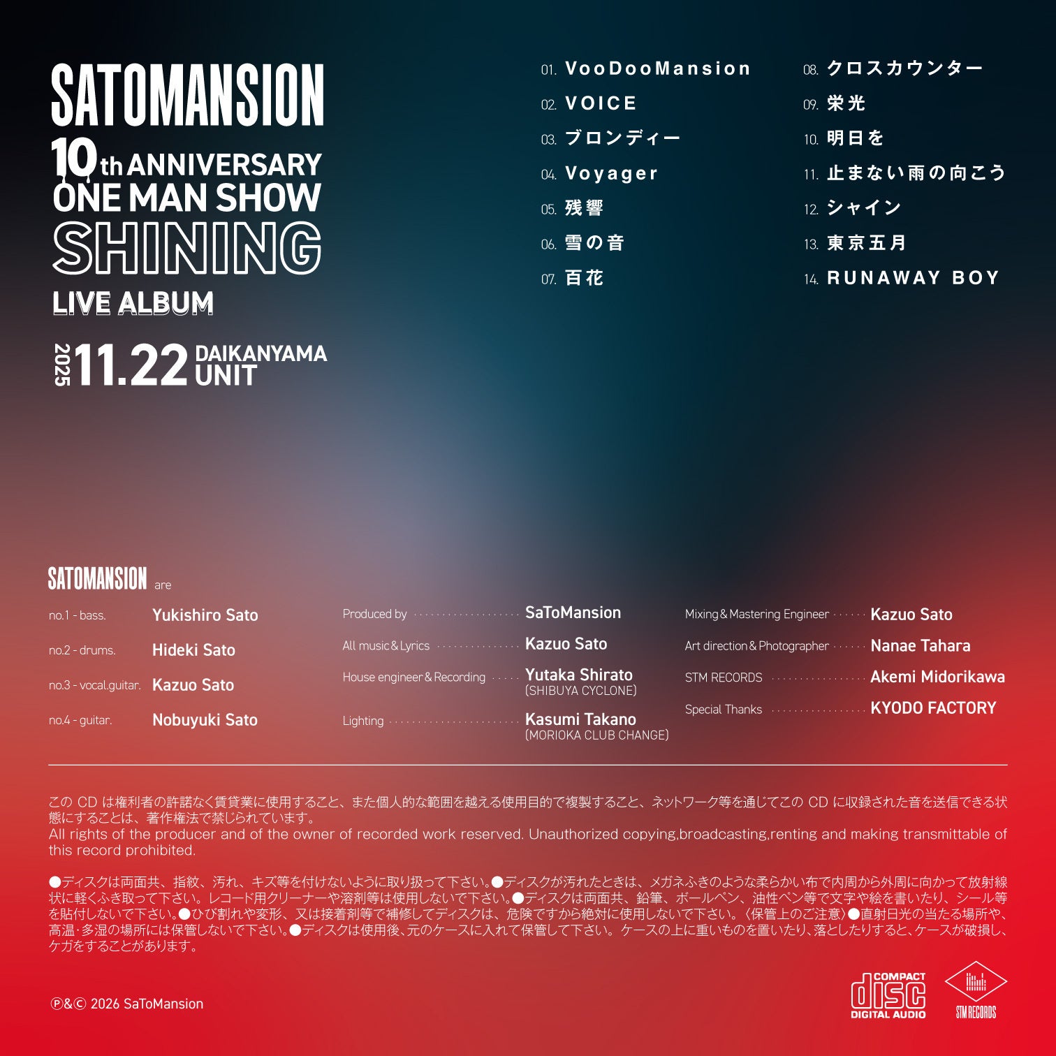 10周年ワンマンライブCD【SHINING】at 代官山UNIT