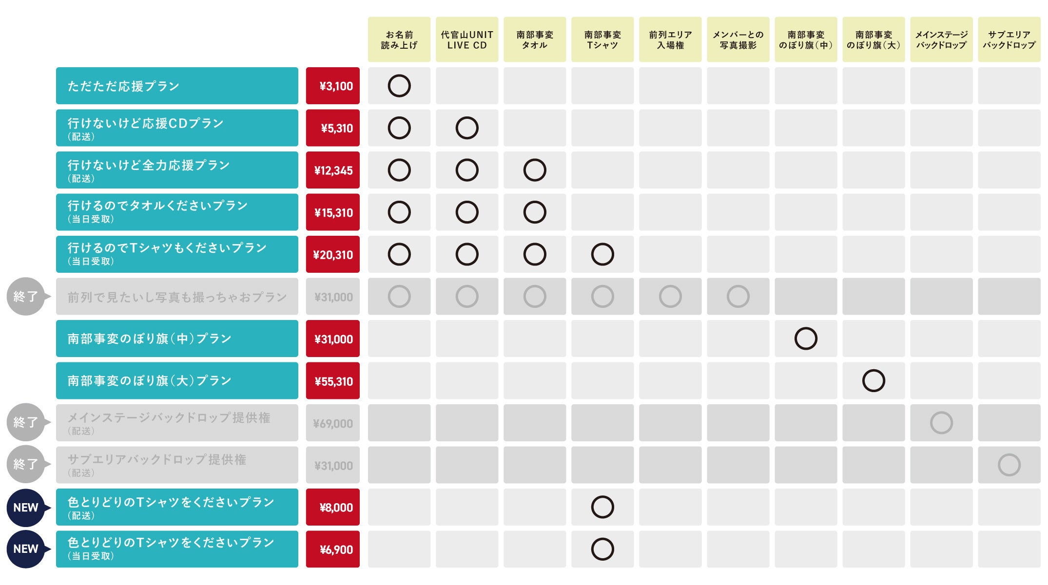 こちらの画像を参考にしていただきつつ、詳細は下部の「プロジェクトを支援する」からご覧ください。(PCでご覧の方は画面右側)