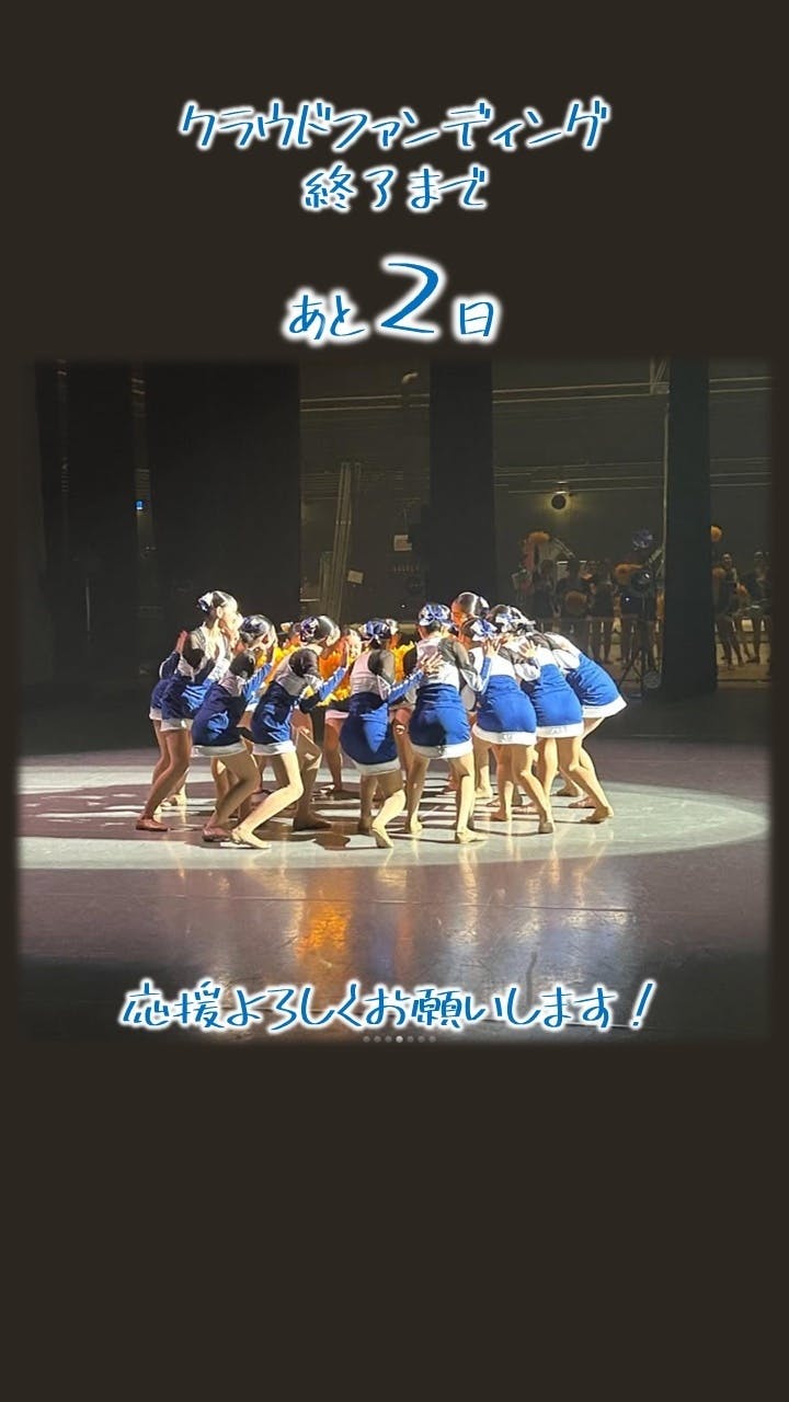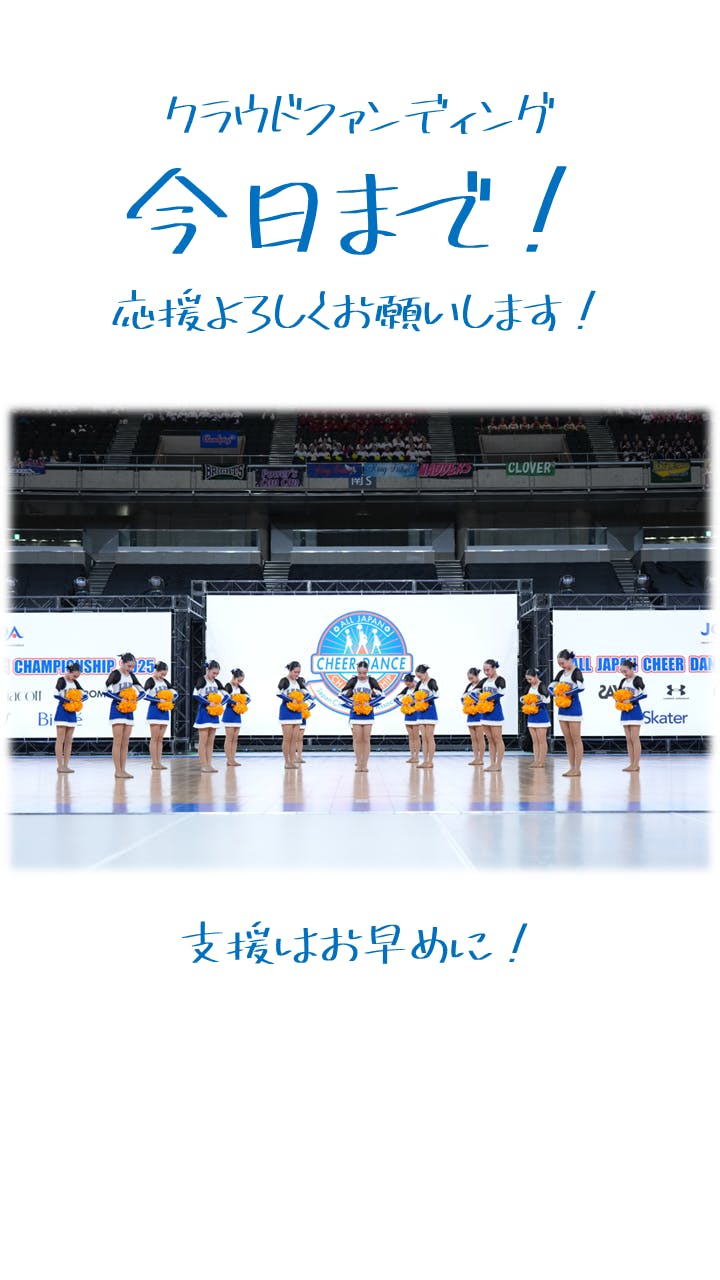 2026/02/27 12:36ご支援、シェア、いいねなどありがとうございます!早いもので、プロジェクト終了まであと2日となりました。明日で本プロジェクトは終了となります。迷っておられる方は、ぜひプロジェクトや活動報告、支援者の皆様からのコメントをご覧いただき、ご支援のご検討いただけますと幸いです。百合学院中学校チアダンス部Liliesは、2026 ICU 世界ジュニアチアリーディング選手権大会に日本代表として出場します。遠征費(保護者負担)軽減のため、ご支援いただけますと幸いです。いいねやシェアも、我々や選手たちの力となります。世界への挑戦、応援よろしくお願いします! もっと見る支援者数が200人を超えました!