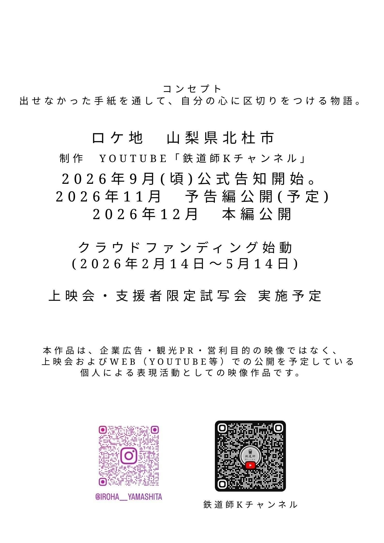 最後までお読みいただきありがとうございます。このプロジェクトは、ただの映画制作を超えた、地域と人とのつながりを深める試みです。山梨県の美しい自然と心温まる物語を通じて、多くの方々に新たな発見や感動を提供したいと考えています。皆様のご支援とご協力が、この映画をより素晴らしいものにします。どうか、私たちと一緒にこの夢を実現する手助けをしていただけたら幸いです。