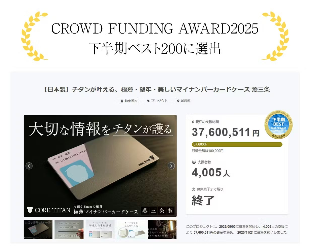 下記の通り、まさに「ケタ違い」の爆発的な結果を残すこととなり、Makuakeを遥かに凌ぐ応援を頂きました。下半期ベスト200にも選出頂き、大きな結果を残しました。