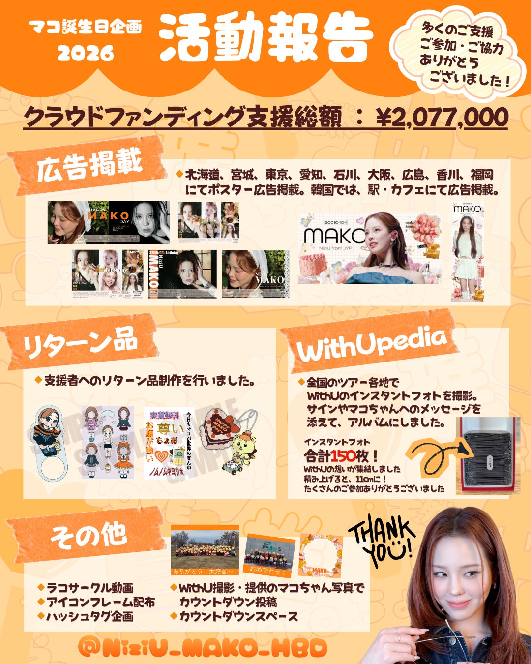 さらに2025年は、MAKOちゃん自らが広告と一緒に記念撮影をしてくれ、NiziU公式インスタグラムにて、「認証ショット」の共有がありました!支援してくださった方や拡散してくださった方すべての皆様には感謝してもしきれません。