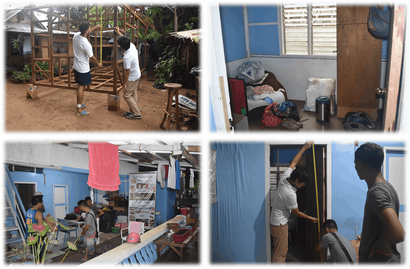 今回はここ「コロン」で運営しているゲストハウスをフルリノベーションする目的でプリジェクトを立ち上げました。現在はゲストハウスは始めたばかりで、2階建ての家を借りて、1階の1部屋に2段ベッドを4台設置しただけの状態です。それ以外はまだ改装等をしていないため、シャワーやトイレにいくのに一旦外に出て土の地面を歩く必要があったり、雨が降ると部屋の外の部分に水がたまったりと、これから解決していかなければならない課題が山積みです。