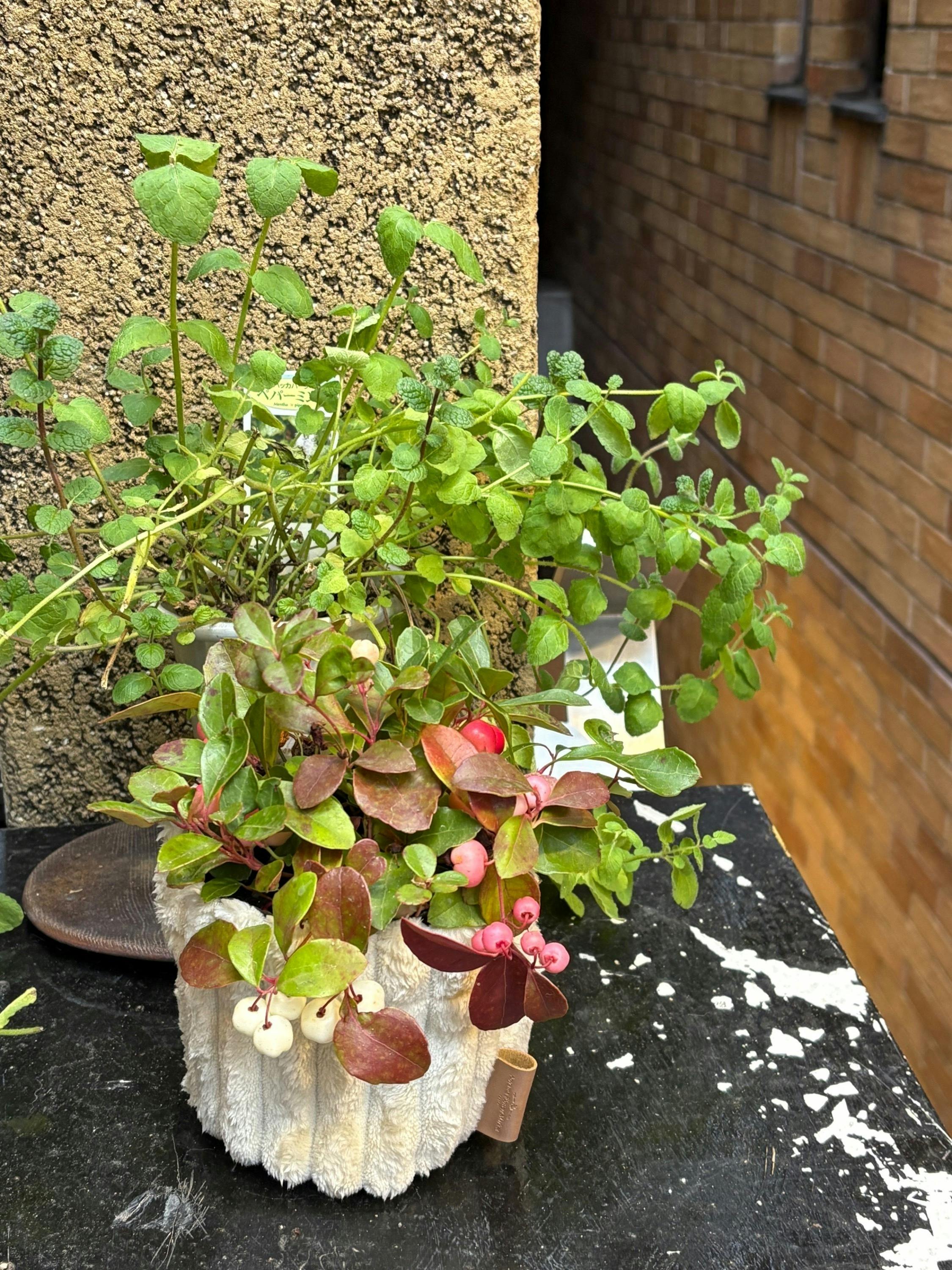地域の皆様のご厚意により、複数のお店などにミントを置かせていただいています。駒テラス西参道さんにも鉢植えのミントを置かせていただいています。
