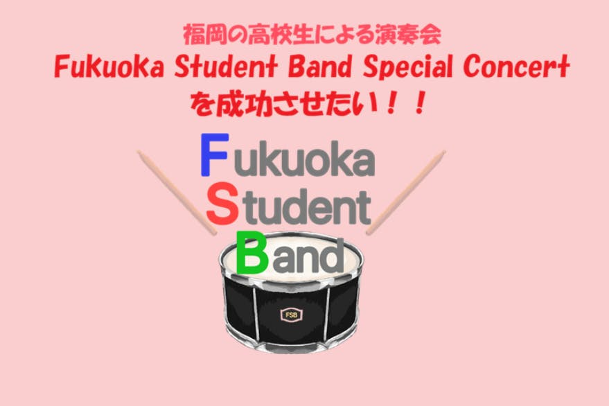 初めまして、Fukuoka Student Bandと申します。私たちは、普段は別々の高校で音楽に取り組んでいるメンバーが集まって、高校生だけで企画・運営・演奏を行う、1日限りの演奏会を計画しています。
