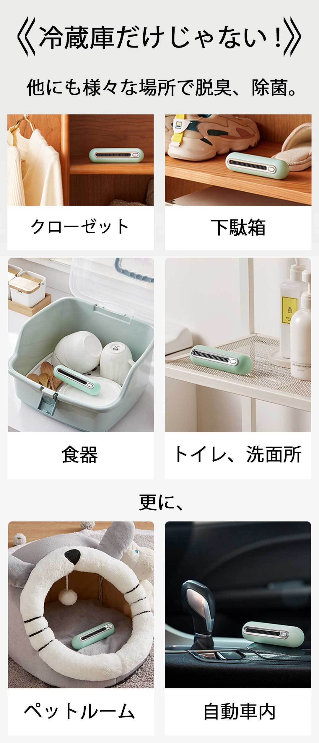 臭い、菌が気になる場所は冷蔵庫だけではありません!シューズボックス、トイレ、クローゼット、洗面所、車内、などなど。