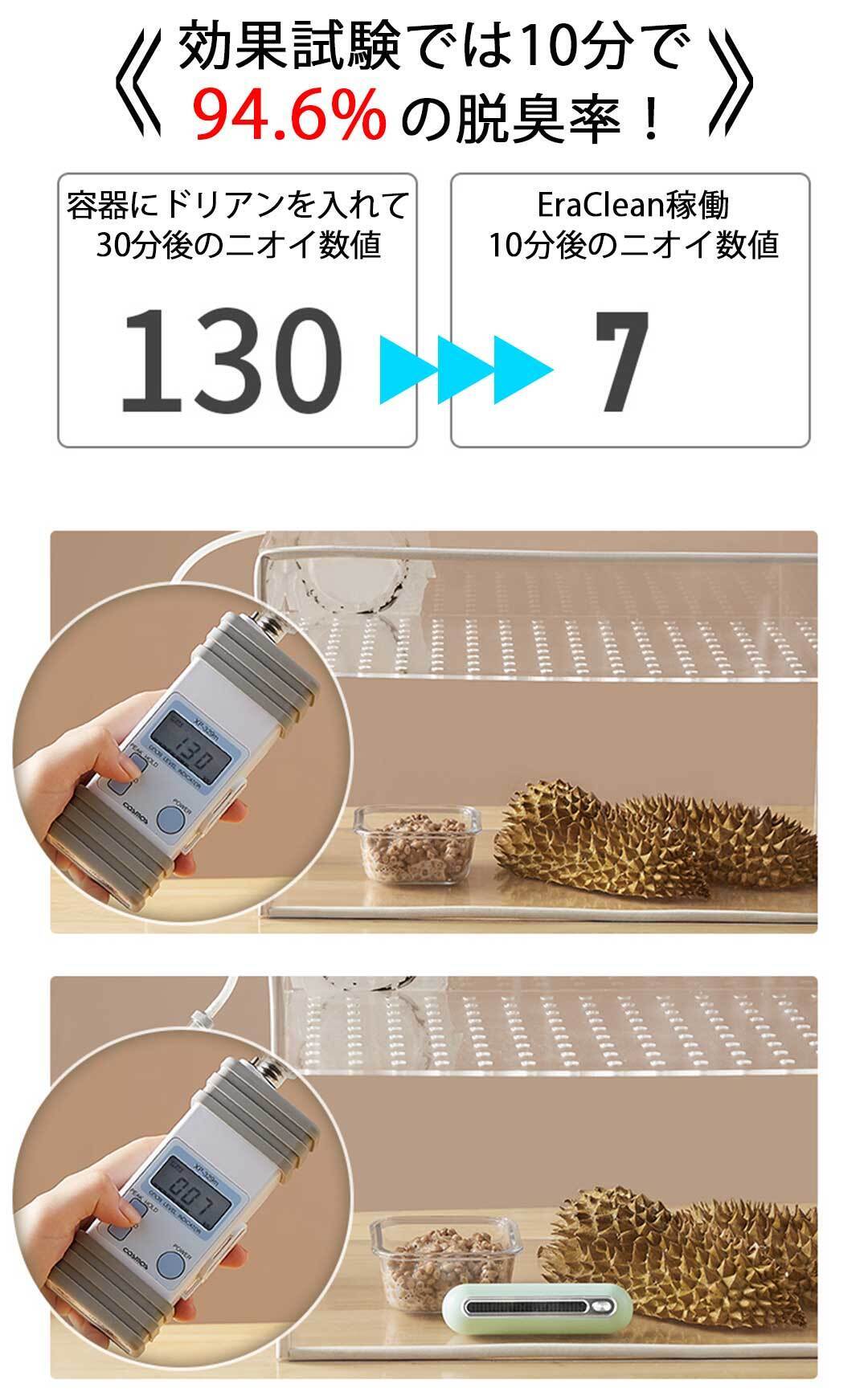 【EraClean】は低濃度オゾン(O3)の力でニオイを抑える脱臭効果を得ることができます。