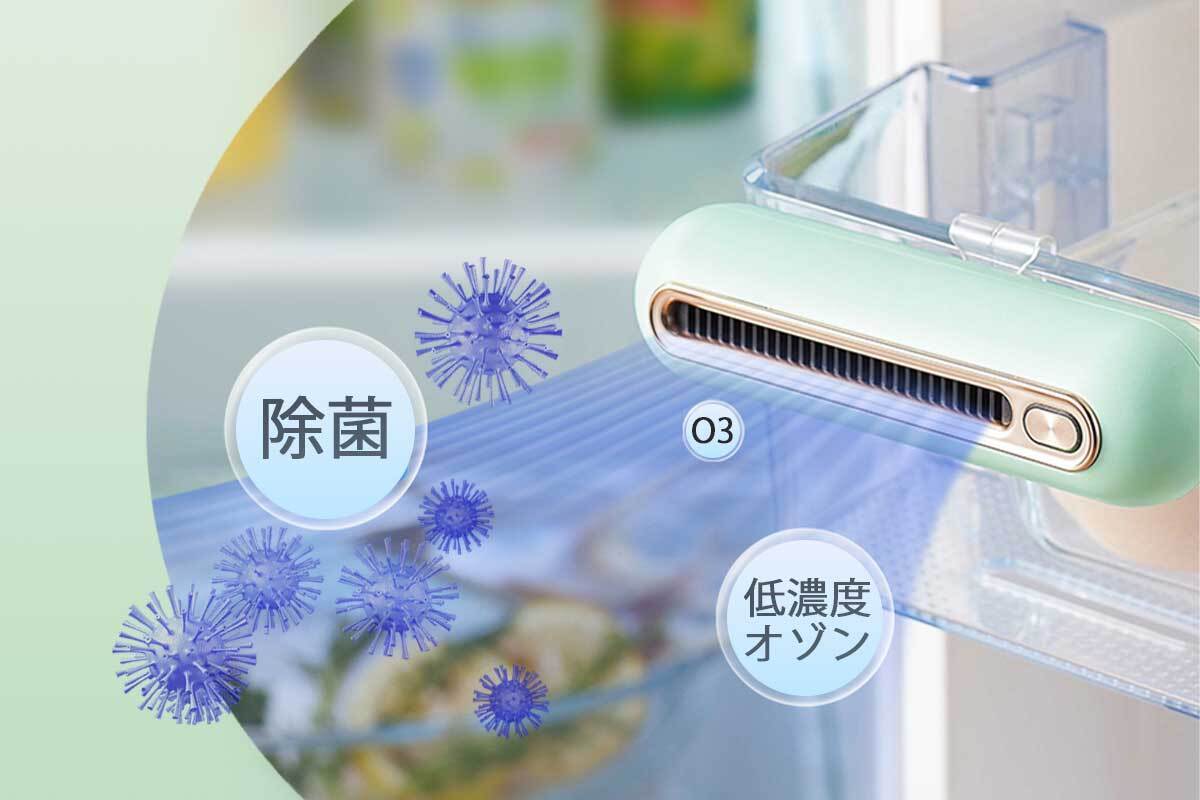冷蔵庫の空気循環で拡散されたオゾンにより、冷蔵庫内を脱臭・除菌し、食材の鮮度を保つことにお役立ていただけます。