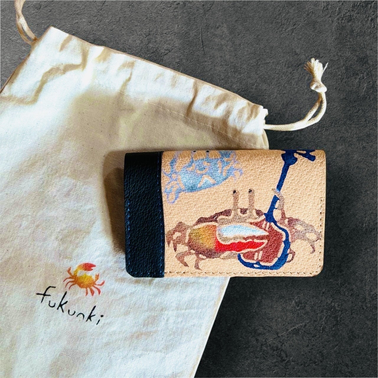 50,000円 ムミンピキカニの本革名刺入れ&紅型カニ袋 2026年6月に提供予定