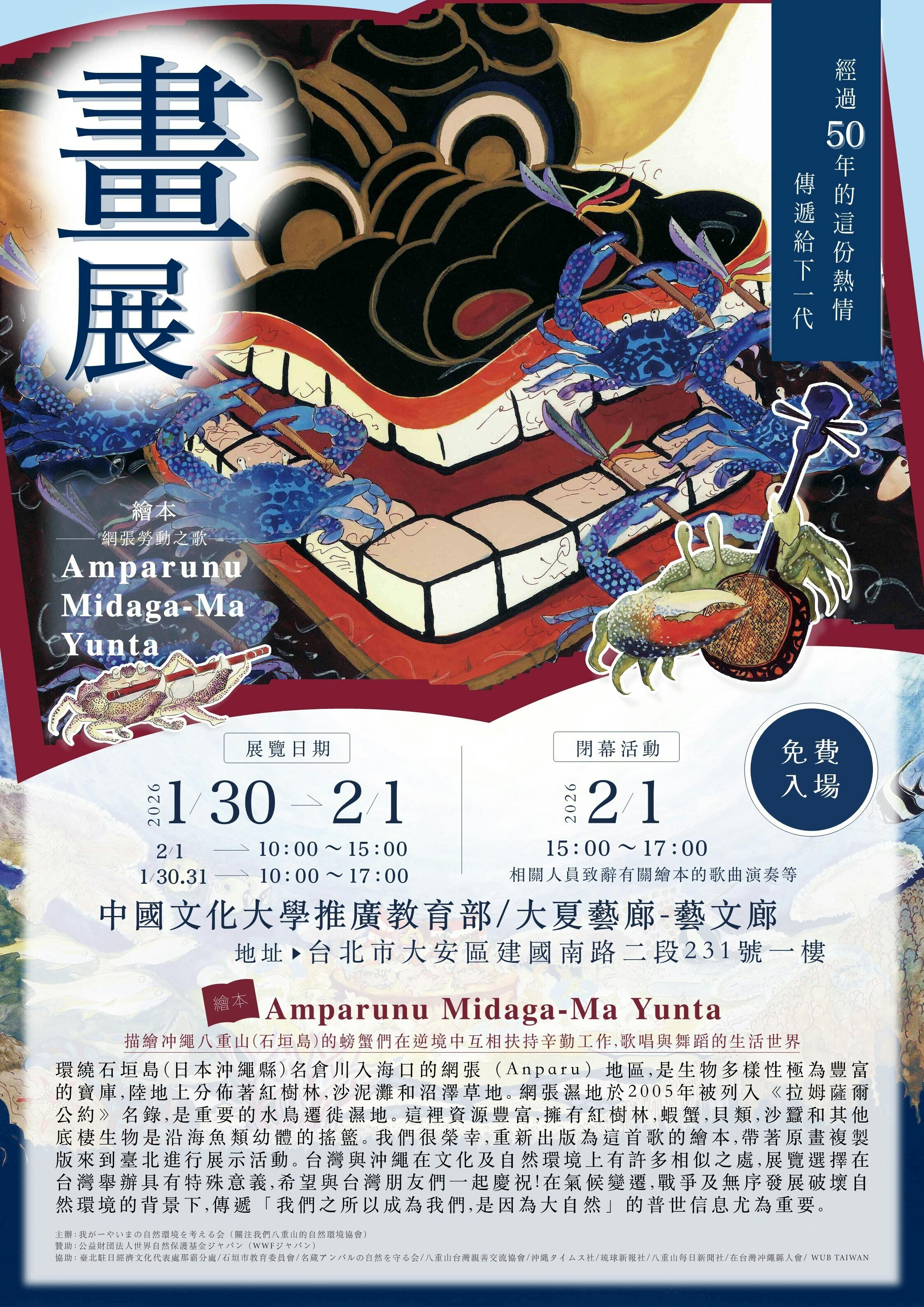 ・後援:石垣市教育委員会、八重山台湾親善交流協会、沖縄タイムス社、琉球新報社、八重山毎日新聞社、在台灣沖繩縣人會、WUB TAIWAN
