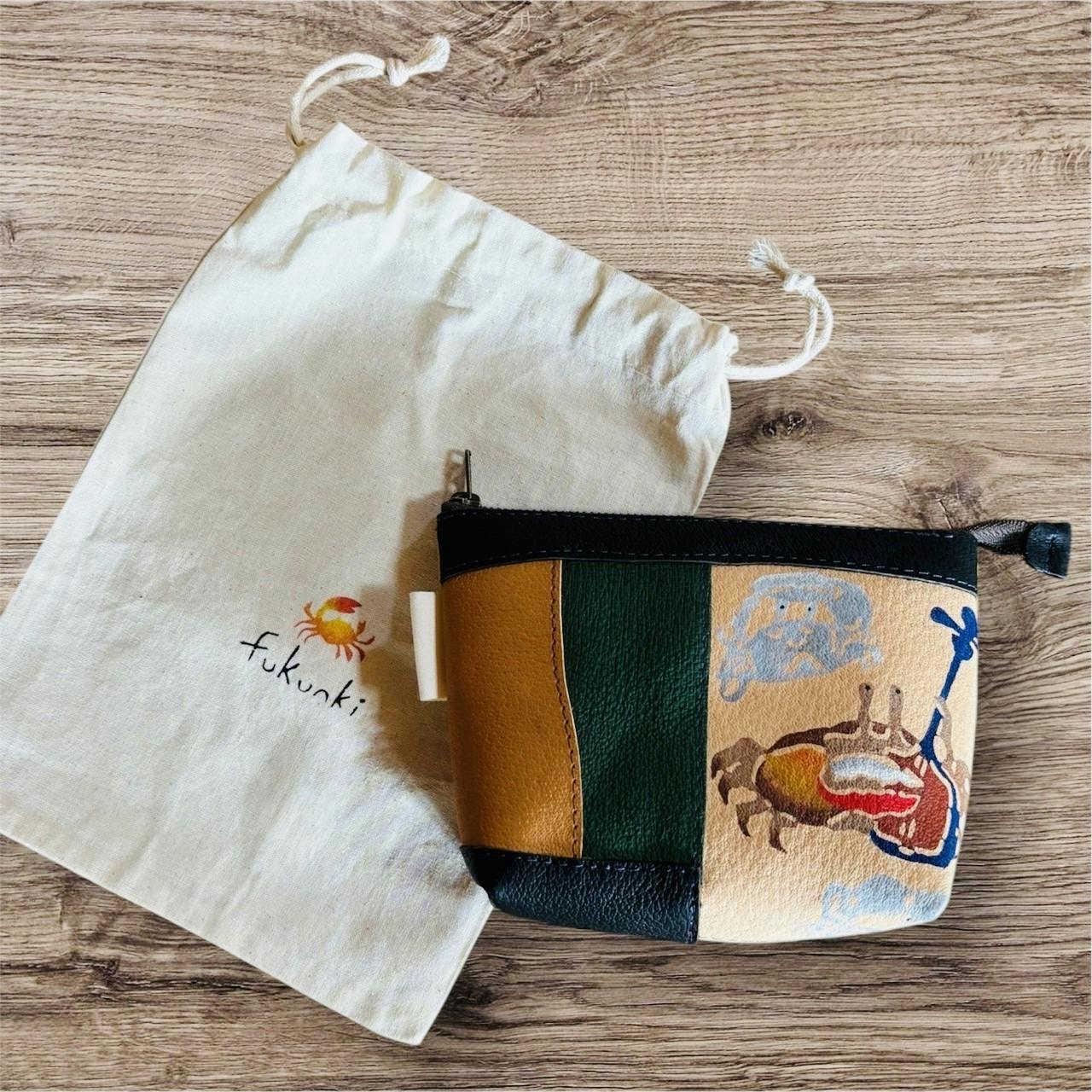 50,000円 ムミンピキカニの本革マチ付きポーチ入れ&紅型カニ袋 2026年6月に提供予定