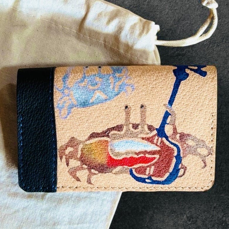 50,000円 ムミンピキカニの本革名刺入れ&紅型カニ袋 2026年6月に提供予定