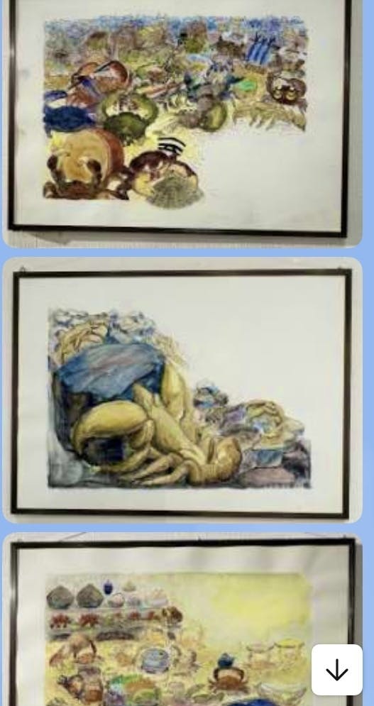 沖縄県内はもちろん、県外で開催した原画展でも、反応は想像以上でした。2024年7月の沖縄県那覇市での開催をスタートに沖縄県石垣市でも展示に加え、朗読・演奏を合わせた五感で楽しんでもらうイベントを開催しました。その後、栃木県佐野市、熊本市、埼玉県深谷市、東京都町田市などでも原画展とアンパルのカニたちの写真展示を開催してきました。