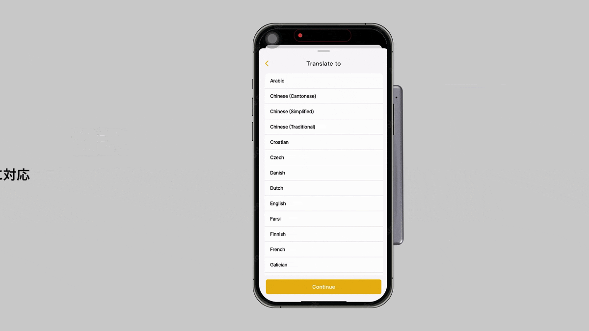36言語の即時翻訳に対応海外出张や多言語での商談も、これ1枚で安心。36言語の即時翻訳機能が、あなたのグローバルなビジネスシーンを強力にサポートします。