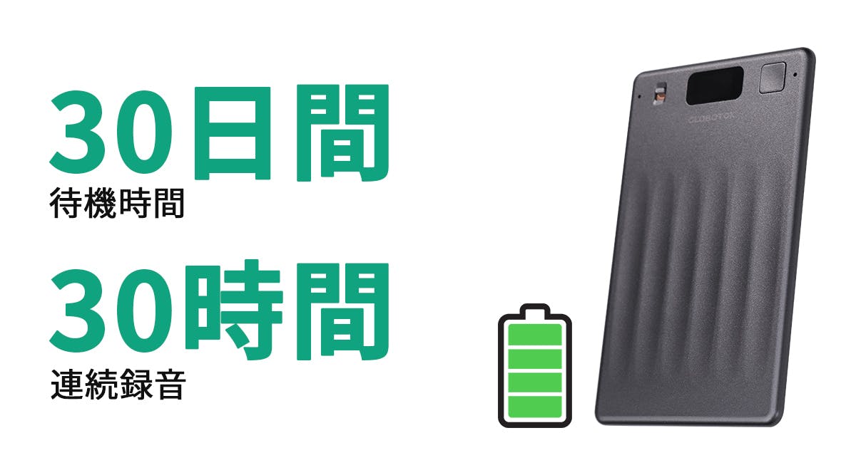 極薄 3.7mm ボディに 660mAh 大容量バッテリーを搭載します。1 回のフル充電で最大 30 時間の連続録音が可能。丸一日の会議や数日間にわたるインタビューでも、バッテリー切れを心配する必要はありません。